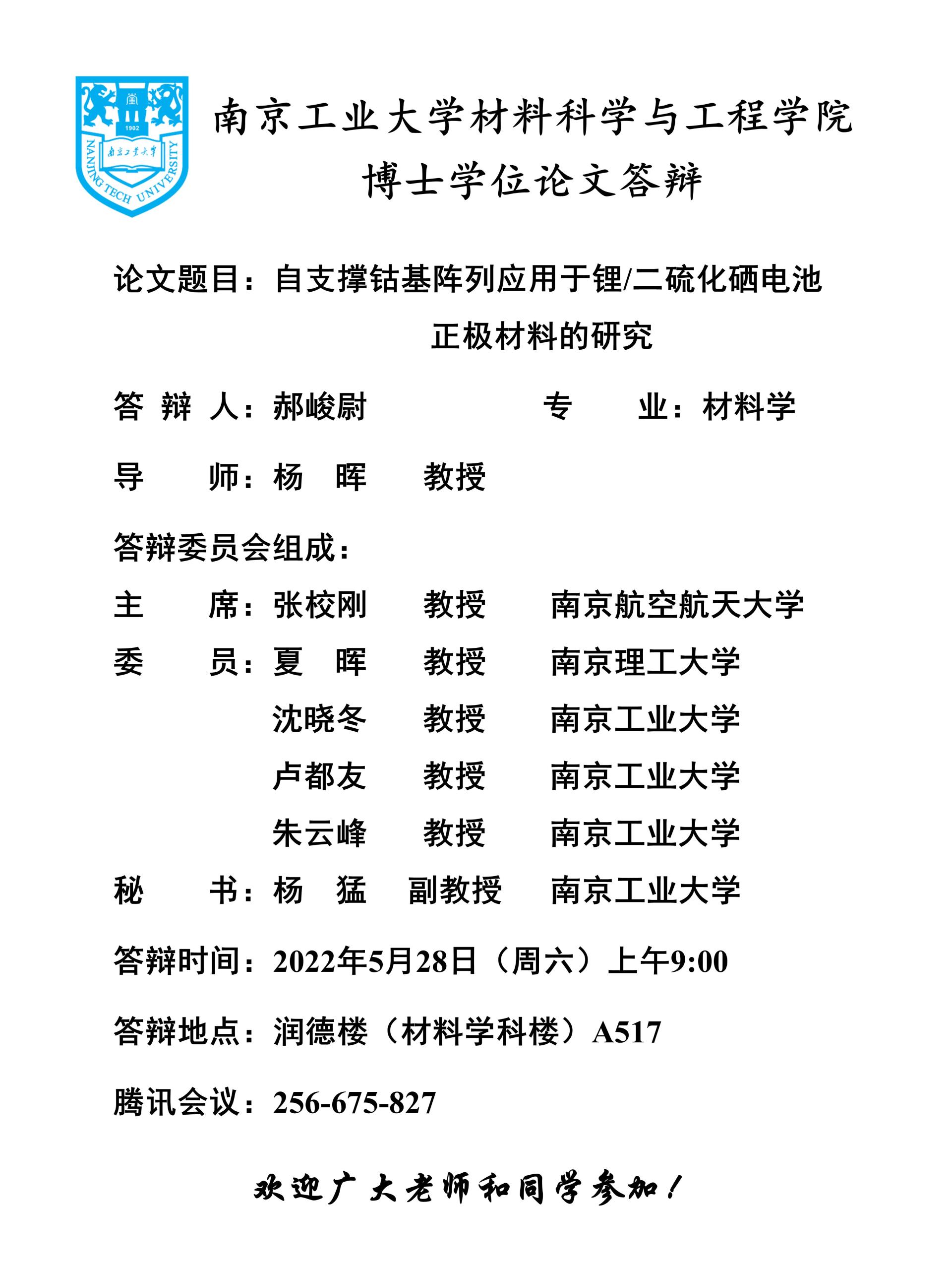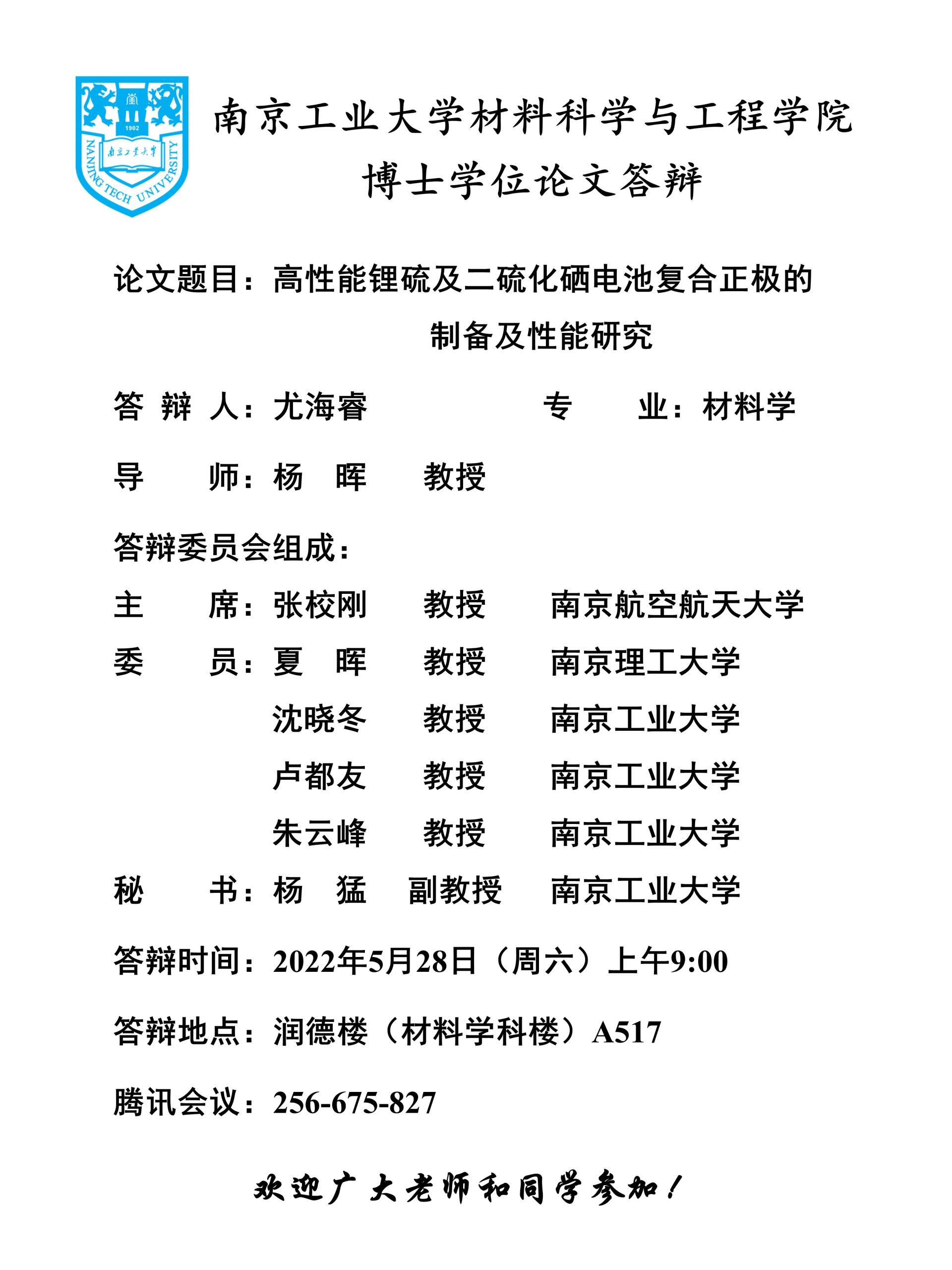 【研究生】2022年第一批博士学位论文答辩公告(三)