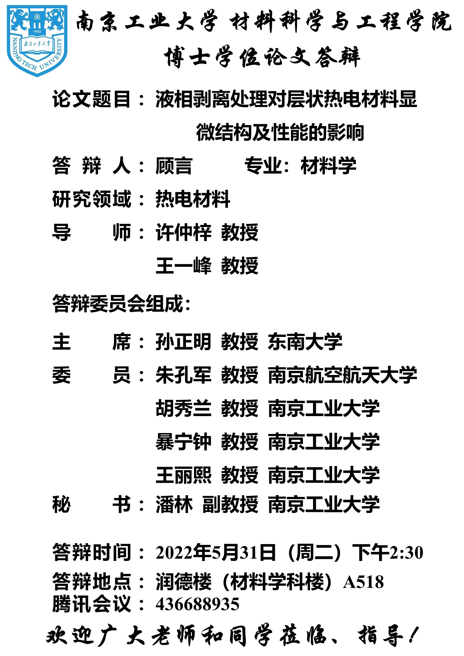 【研究生】2022年第一批博士学位论文答辩公告(四)