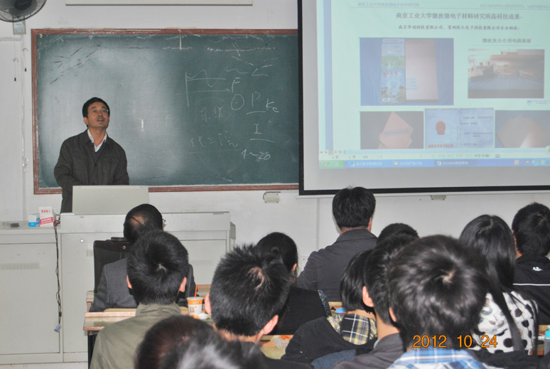 之后,周洪庆、张其士及王晓钧等教授也在会上作了简短的发言。周洪庆教授就自己的部分科研成果向大家做了简短的展示。周教授先后培养了四十多位研究生,其中30%左右继续深造或留任各高校做研究工作,其他的则都去了一些较好的单位,这也为同学们今后发展起到了一个导向的作用。周教授建议希望考研的同学们要提前与老师联系,同时学习上要勤奋努力、夯实基础。张其士教授则对自己的一些研究成果,如:隐身材料、防护材料、微波材料以及发光材料等作了简短的汇报,增加同学们对于材料研究的兴趣。对于要考研的同学,张教授希望大家“不要过度在意公司名声,主要考虑公司的学科和专业的优势”,强调本校的材料专业在全国有较高的知名度,团队力量也很强,鼓励大家报考本校研究生。王晓钧教授则向在场的同学提出了两点点希望,希望大家能够谨记老师们的教导,同时期望大家积极报考本校,也希望大家把握好最后的七十多天,努力学习最终实现自己的梦想。