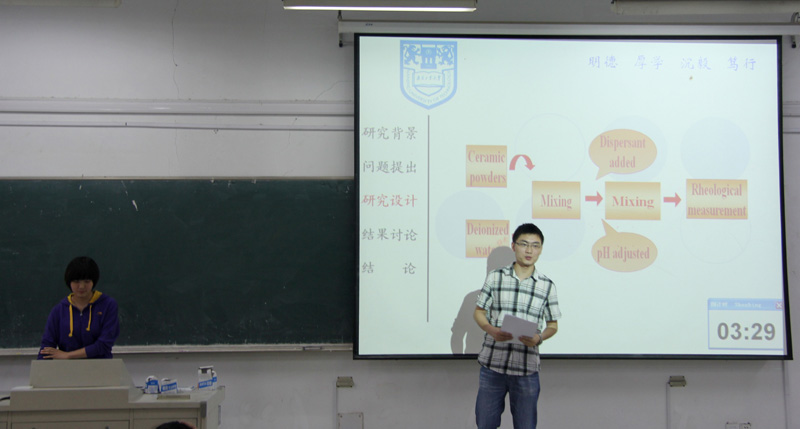 随后大赛在热烈地掌声中拉开了序幕。本次大赛三月开始宣传,经过了作品申报、作品书面评审后,包括本科生、研究生、博士生在内的18名选手从中脱颖而出参加了本次大赛。参加比赛的各队选手分别按顺序上台,详细解说自己的论文、作品,对照着本队之前准备好的PPT,认真地陈述自己队伍的设计理念,充分解说本队产品及方法理念的设计优点,并当场进行PPT演示,而后接受评委及嘉宾的提问和点评。经过激烈的教师同学互动,每支队伍都展示了自己的研究成果,得到了评委老师的实质性的评价和建议。副经理王庭慰对参赛作品进行了最后点评,他在肯定同学们取得成绩的同时,也指出参赛作品的不足。最终,在观众们的如雷掌声中,本次大赛顺利落下帷幕。