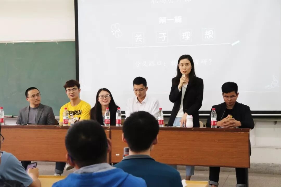 第一次活动在4月19日于浦B301举办,学长学姐个人分享,方亮老师总结建议:在大一时期应该多尝试,勇于探索,大二积极做好考研多项准备,大三结合自身专业兴趣,充分做好考研冲刺工作。