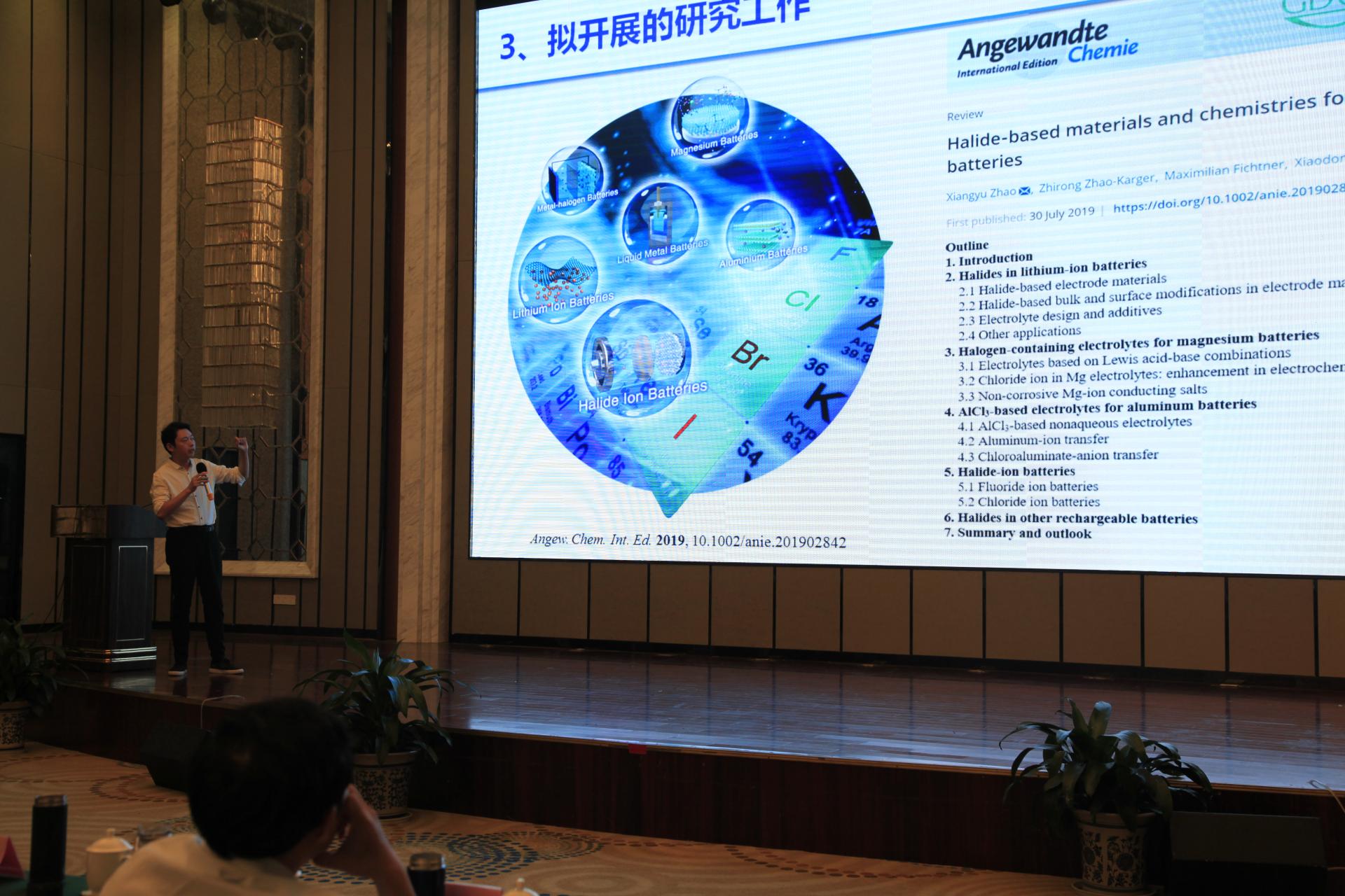 之后,邀请青年教师代表赵相玉教授、朱云峰教授和管自生教授分别作主题报告。赵相玉教授是公司青年教师的优秀代表,发表SCI期刊论文70余篇,并于今年8月于领域内顶级期刊《ANGEW》发表最新成果。赵相玉教授以《基于氯离子传导的新型电化学储能体系》为主题,从主要学术成绩和拟开展的科学研究工作入手,与全体教授分享科研心得。朱云峰教授以《国家自然科学基金申请书撰写及注意事项交流》主题报告,从准备工作、申请书组成及如何撰写、申请书不通过的主要原因和自身申请体会等方面阐述了国家自然科学基金申请的撰写要求和注意事项,分享了自身的科研经验。管自生教授作科研成果转化方向的主题报告,对如何开展科研成果转化、提升其经济效益等方面交流发言。