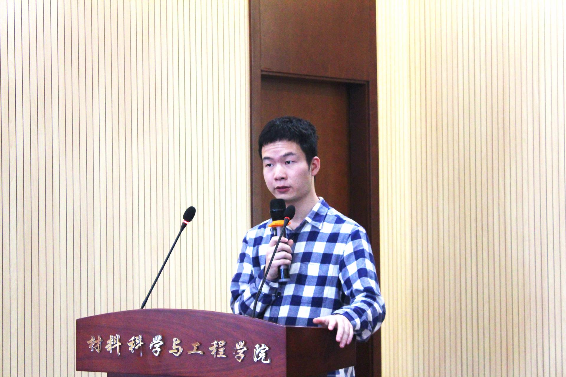 最后,来自材实验1601的孙哲飞同学向大一大二的同学们简明扼要地介绍了本科生学术科技论坛工作,并分享了自己参加论坛的经历。同时他呼吁同学们端正态度做好论坛,以严谨认真的姿态撰写论文。