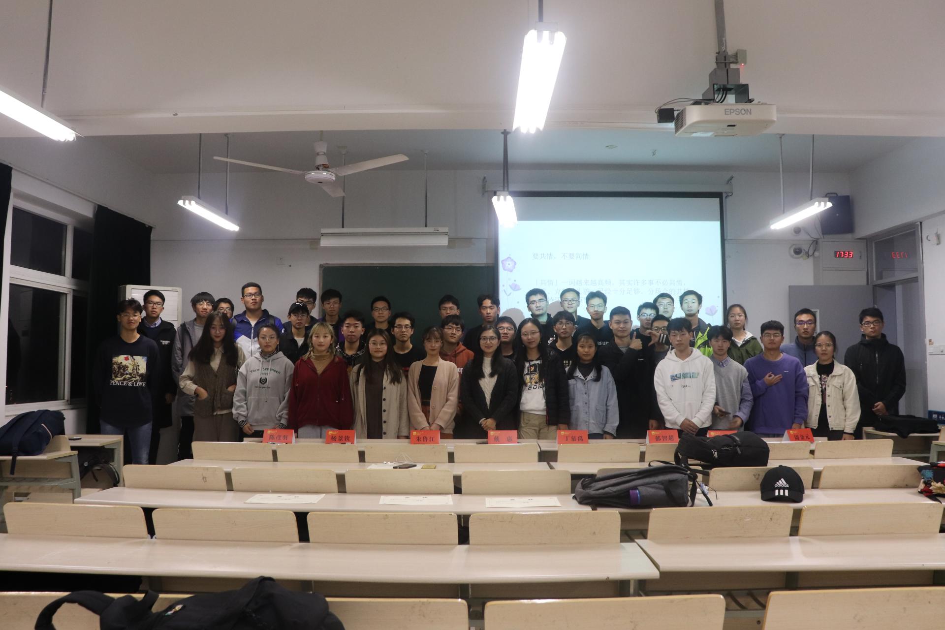 11月22号,suncitygroup太阳集团员工会心理协会在厚学305举办了心理班会评选活动。suncitygroup太阳集团团委书记兼心理辅导员戴惠老师、suncitygroup太阳集团员工会心协部长陈彦羽同学、副部长朱鲁江同学、18级优秀心理委员代表担任本次活动评委。大一全体心理委员参加了本次活动,活动由18级汤兆腾同学主持。