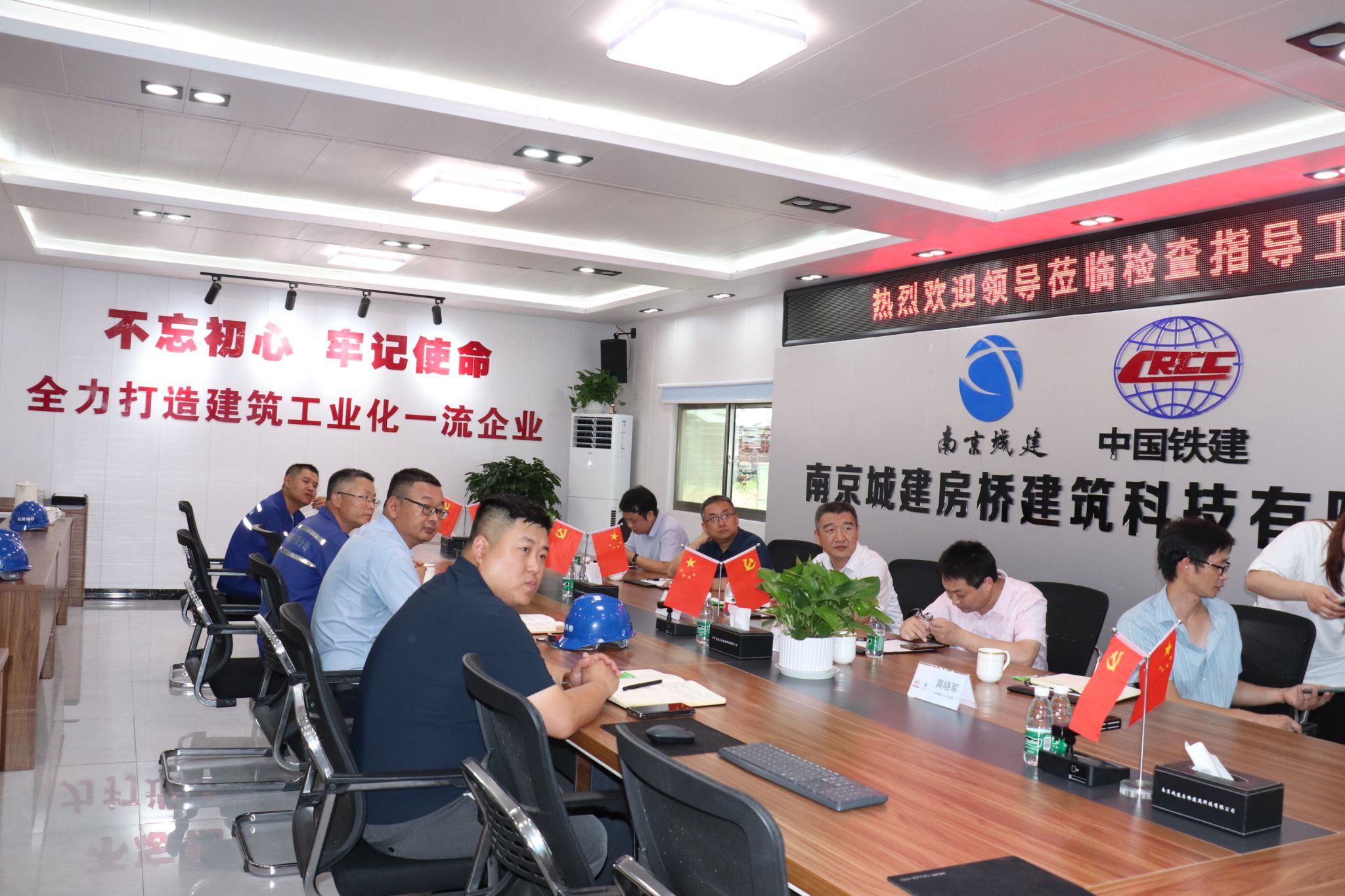座谈交流会前,在南京城建房桥公司总经理张志澎、党支部书记兼总工张志广等领导陪同下,与会人员共同深入生产厂区,参观了公司产品生产线、展厅。