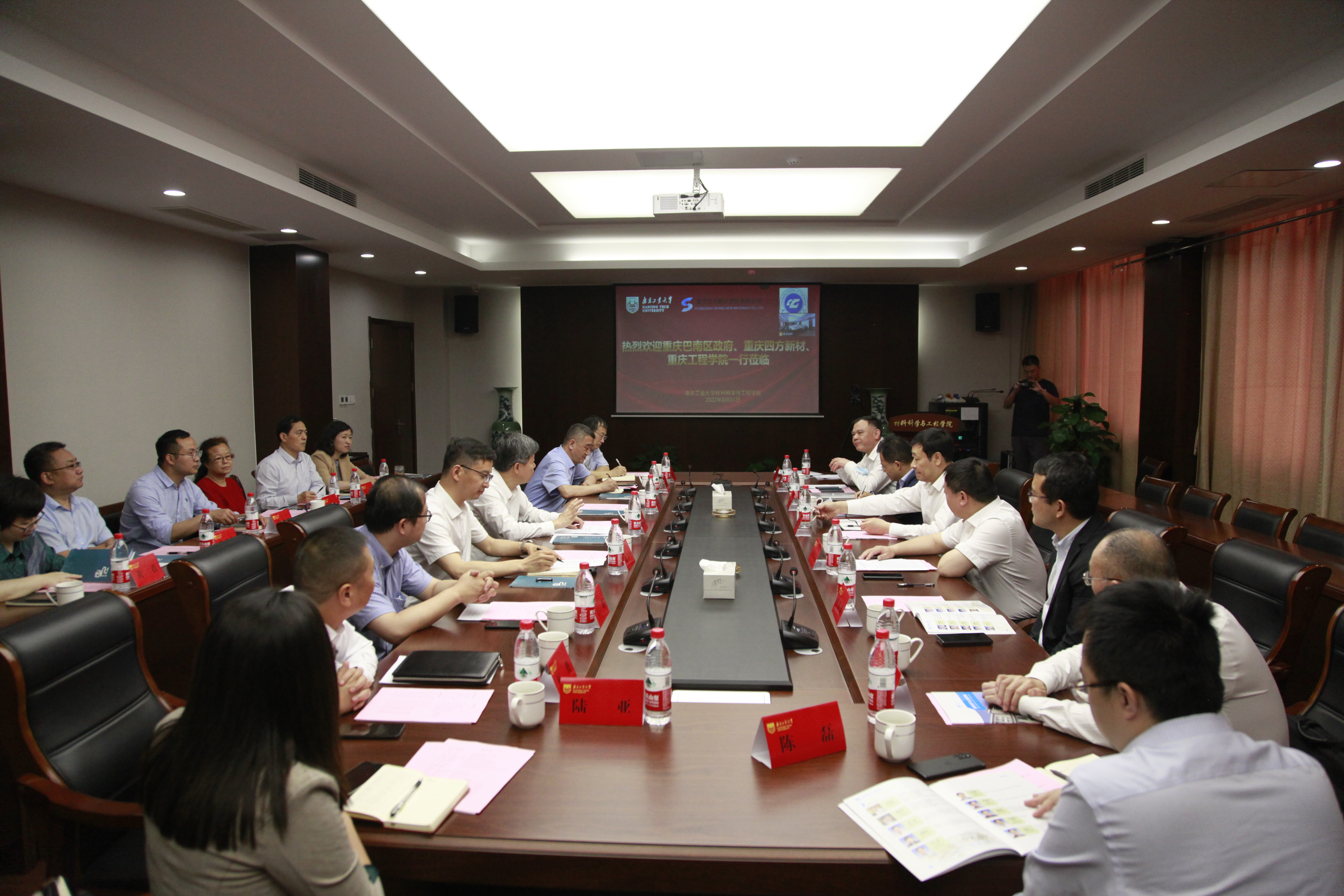5月31日,重庆市巴南区政府杨亚平副区长、重庆工程公司桂国庆董事长、重庆四方新材股份有限公司李德志董事长一行走进suncitygroup太阳集团调研,并达成合作框架协议。公司党委书记芮鸿岩、副董事长邢卫红、公司党委书记高树军、经理陆春华、部分教师出席会议,会议由公司党委书记高树军主持。