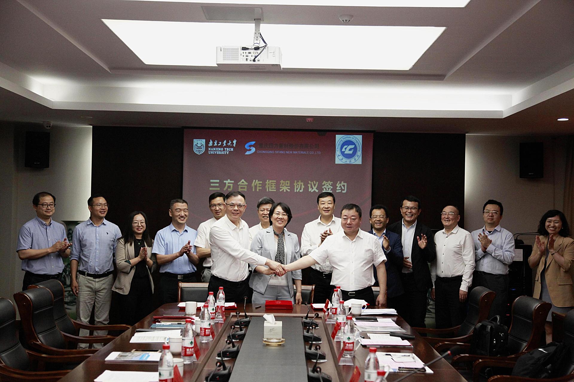 会上,三方签署了合作框架协议,各方结成全面战略合作伙伴关系,立足建筑建材领域科技创新,推动科技成果转化,提升建筑建材行业研发创新能力,依托重庆四方新材有限公司产业平台,在科研开发、成果转化、人才培养、教育实践、学科共建等领域展开全方位的合作,研究筹建研究院、院士工作站、博士后流动站等,促进公司与企业、公司与公司深度联合,为推动四方新材继续保持行业技术引领地位及suncitygroup太阳集团和重庆工程公司建设发展提供有力支撑。