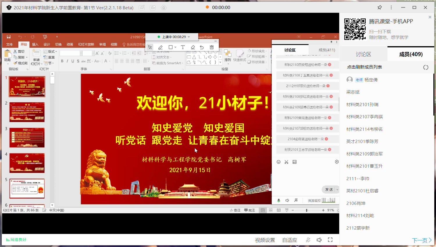 开课前,高树军书记亲切地称呼同学们为“小材子”,并对“材子”们加入​suncitygroup太阳集团大家庭表示欢迎和祝贺。高树军通过对党的百年奋斗历程和伟大历史成就的简单回顾,国内和国外的纵横比较,深入浅出地为同学们剖析了“青年老员工为什么要学党史?”、“如何在党史学习中汲取力量?”等问题。
