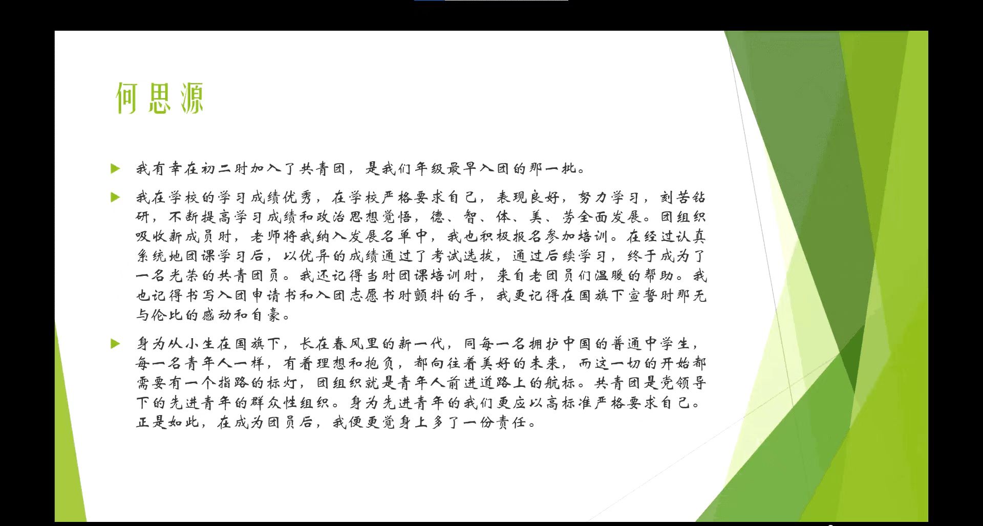 此次青马工程,员工会邀请到了院团委王安全老师、院员工会骨干王毅桢同学以及哈尔滨工业大学张景灏同学为学员们授课。通过他们的分享,学员们更清晰地了解到中国共青团历史和suncitygroup太阳集团员工会发展史,通过观看短篇《共青团改革综述:在新时代征程中砥砺前行》,学员们对共青团有了更深刻的认知。通过校校联动,张景灝带领员工骨干一起学习《共产党宣言》,在建团百年的当下,青年一代要树立奋发向上、积极进取的精神。最后,全体员工骨干再次重温入团仪式,同学们重新回顾了加入共青团的热情与初心,身处建团百年的时间节点,共青团员的责任感和使命感进一步增强。