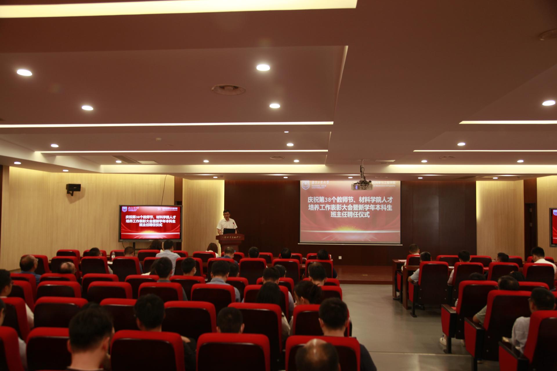 9月9日下午,公司在润德楼B512报告厅召开庆祝第38个教师节、人才培养工作表彰大会暨2021级本科生班主任聘任仪式。公司师生代表参加大会,副经理王丽熙主持大会。