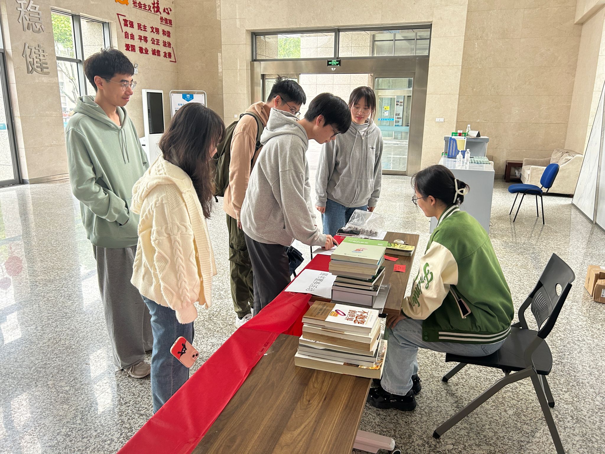 本次活动流程可概括为“捐赠图书——登记信息——领取兑换券——凭券领书”四个环节,交换人需携带内容健康、八成新的图书经工作人员登记检查后领取兑换券,在指定时间凭兑换券领取图书。经过前期宣传和支部党员同学精心筹备,活动吸引了众多师生前来咨询和参与,最终收到捐赠书籍五十余本,交换图书三十多册。