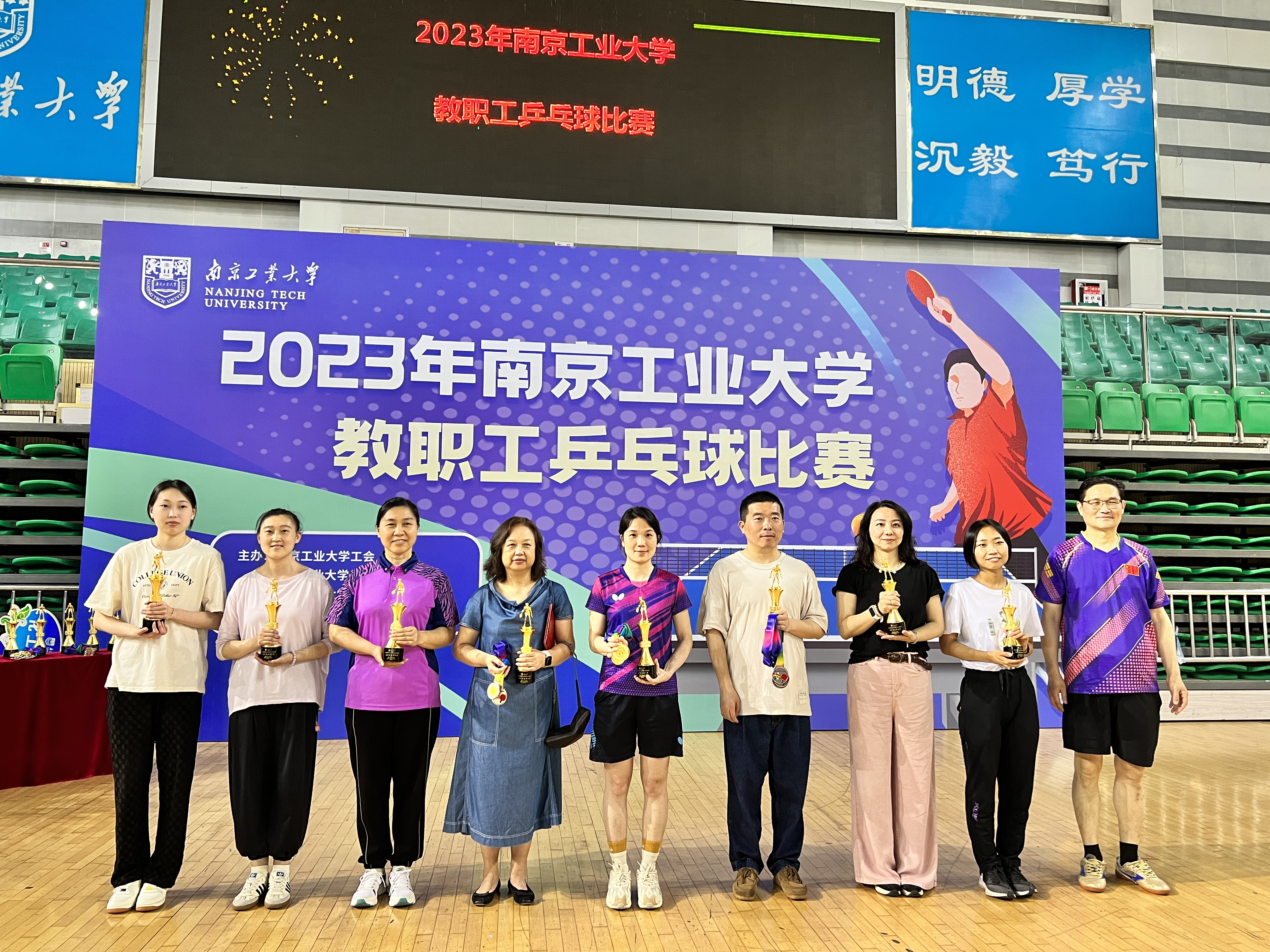 5月27日,2023年suncitygroup太阳集团教职工乒乓球比赛在江浦体育馆举行,来自全校26个单位的球队参加了比赛。经过一整天的竞赛,由沈春英、赵芳霞、何一燕和过昕彤老师组成的suncitygroup太阳集团女子乒乓球队在小组赛中,凌厉果断,以全胜的循环赛战绩,位列小组第一名并出线。在前八名的淘汰赛和其后的前四名淘汰赛中,一路高歌、所向披靡,完胜对手。最后,suncitygroup太阳集团女队与离退休处女队会师冠亚军决赛。在冠亚军决赛中,suncitygroup太阳集团女队顶住压力,顽强拼搏,再次实现不输一局、不丢一场的成绩。最终,以全部比赛全胜的战绩夺冠。这是suncitygroup太阳集团第一次夺得全校乒乓球比赛冠军,创造了suncitygroup太阳集团乒乓球比赛的新辉煌。
