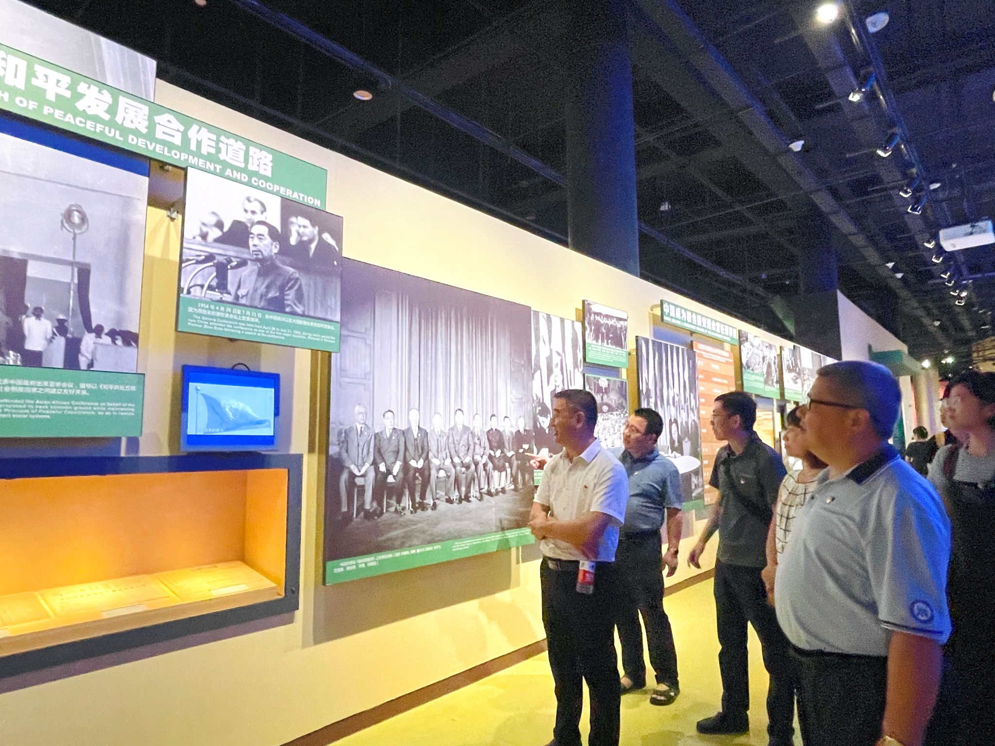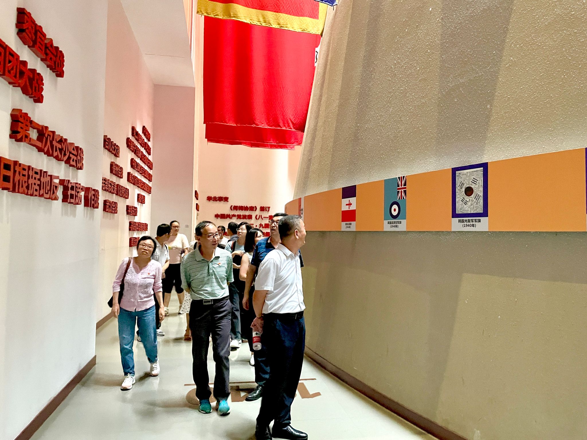 大家按照展陈顺序重温那段可歌可泣的抗战历史,认真阅读和浏览馆内陈列的文史、影像资料,仔细参观了《侵略者的罪恶》《不屈的抗争》《法西斯的投降》《正义的审判》《争取持久和平》五个部分的展示,1100余幅珍贵历史照片、6000余件文物、详实的资料和历史影像,真实再现重大历史事件和重要历史人物,提醒同志们铭记历史、缅怀先烈、珍爱和平、开创未来。在648位抗战老兵手印浮雕前驻足,大家深受感触,深切缅怀革命先烈为了民族独立和世界和平作出的伟大牺牲,深入领会“正义必胜、和平必胜、人民必胜”的重要内涵。