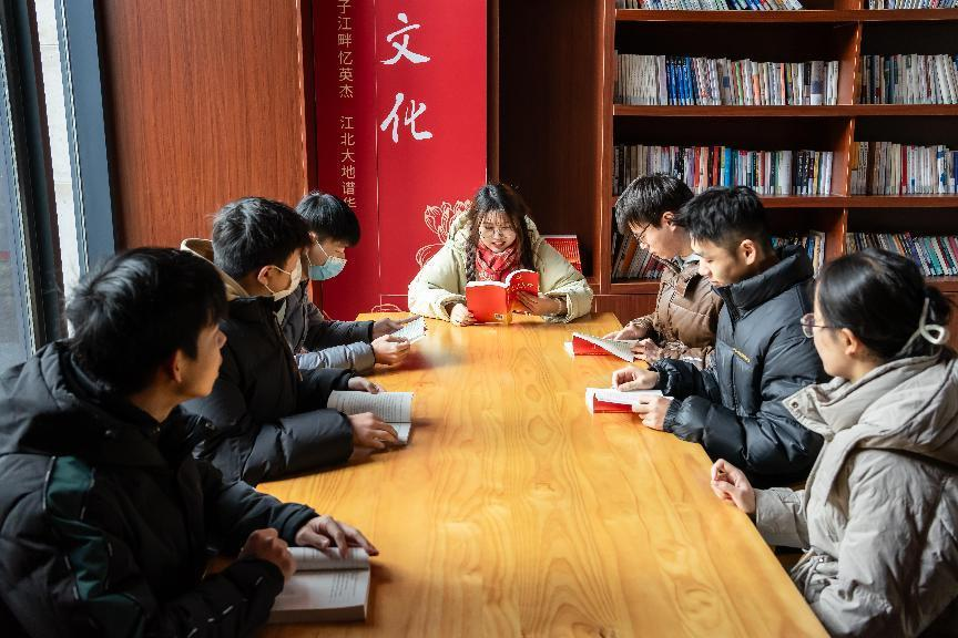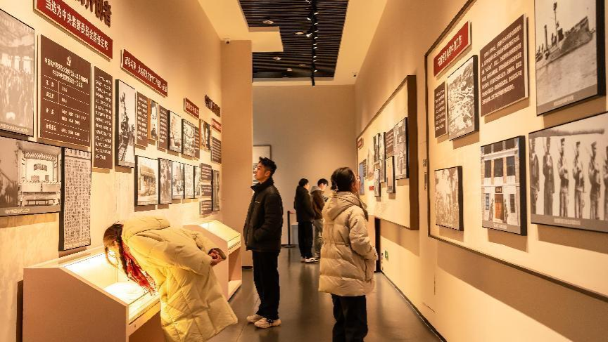 红色文化展陈馆主体建筑呈“品”字形布局,整体展陈设计以江北新区红色文化传承为出发点,共7个单元,运用图版、文物、人文诉说、艺术创作和现代科技等方式再现红色场景。在研会主席汪沁馨的带领下,研会成员走进红色场馆,追寻先辈足迹,依次观看了“两浦星火,革命洪流”“疾风劲草,北岸屹立”“救亡烽火,坚持抗战”等七个部分。大家通过听取讲解、观摩实物、观看图片视频,追忆南京早期党组织的光辉历史,重温波澜壮阔的斗争岁月,深刻领悟老一辈革命者的坚定信仰和崇高革命精神。