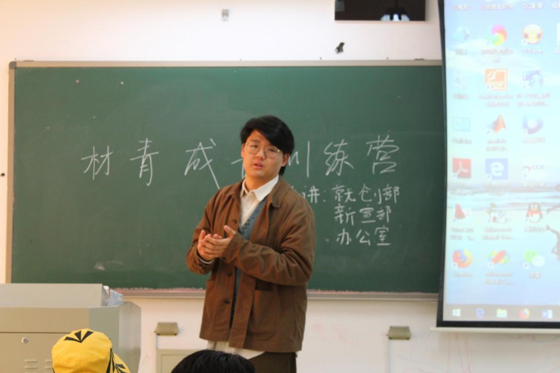 活动开始,就创部部长王洋同学分享了关于职业生涯规划和就业的知识,让大学新生对未来规划有了更清晰的认识。紧接着,新宣部部长陈震锴为致力员工组织的同学们讲解了关于一篇完整的新闻稿的要素、格式、特点、写作要求以及注意事项都有哪些。最后,办公室部长王子安结合自己精心准备的PPT,为同学们介绍了PPT制作与美化的小技巧。