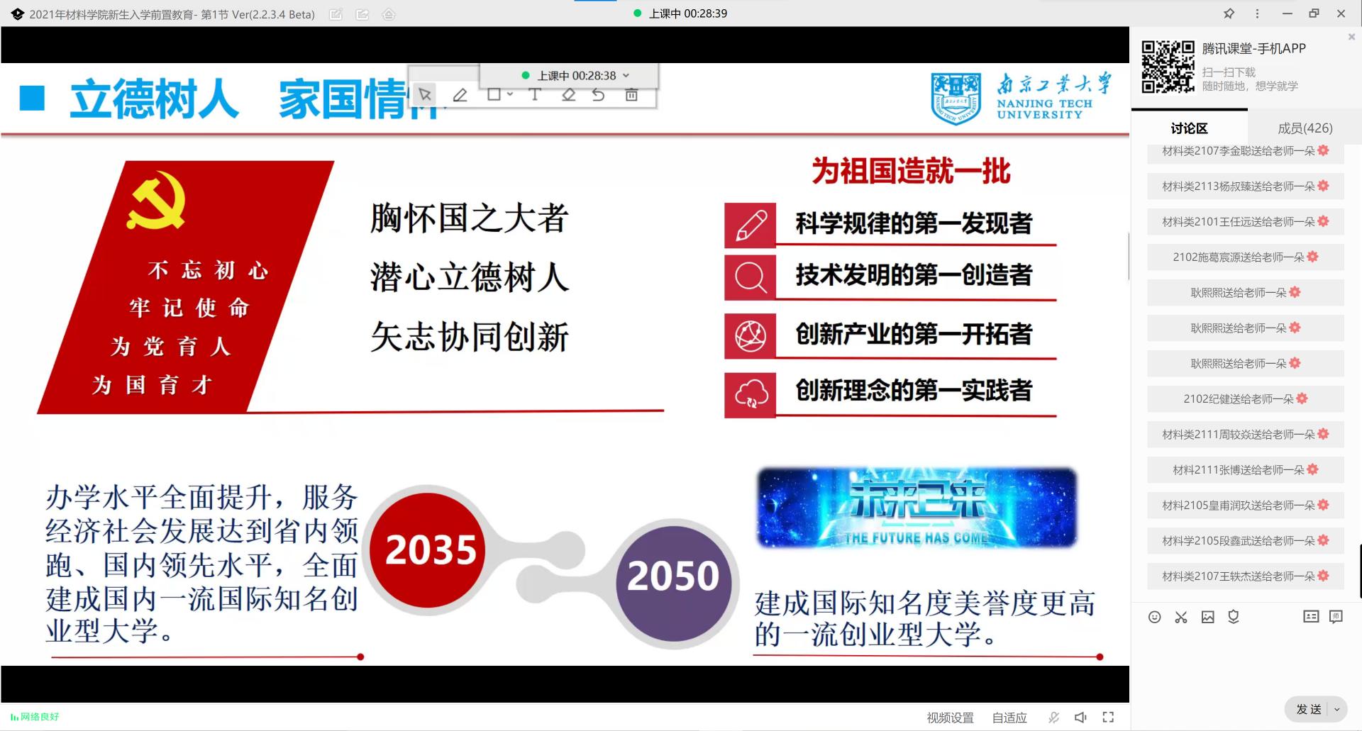 为引导新生明确学习目标,厚植家国情怀。9月24日下午,suncitygroup太阳集团经理陆春华通过腾讯课堂平台作题为《suncitygroup太阳集团校情暨suncitygroup太阳集团院情介绍》的经理第一课,2021级400余名新生参加本次课程。