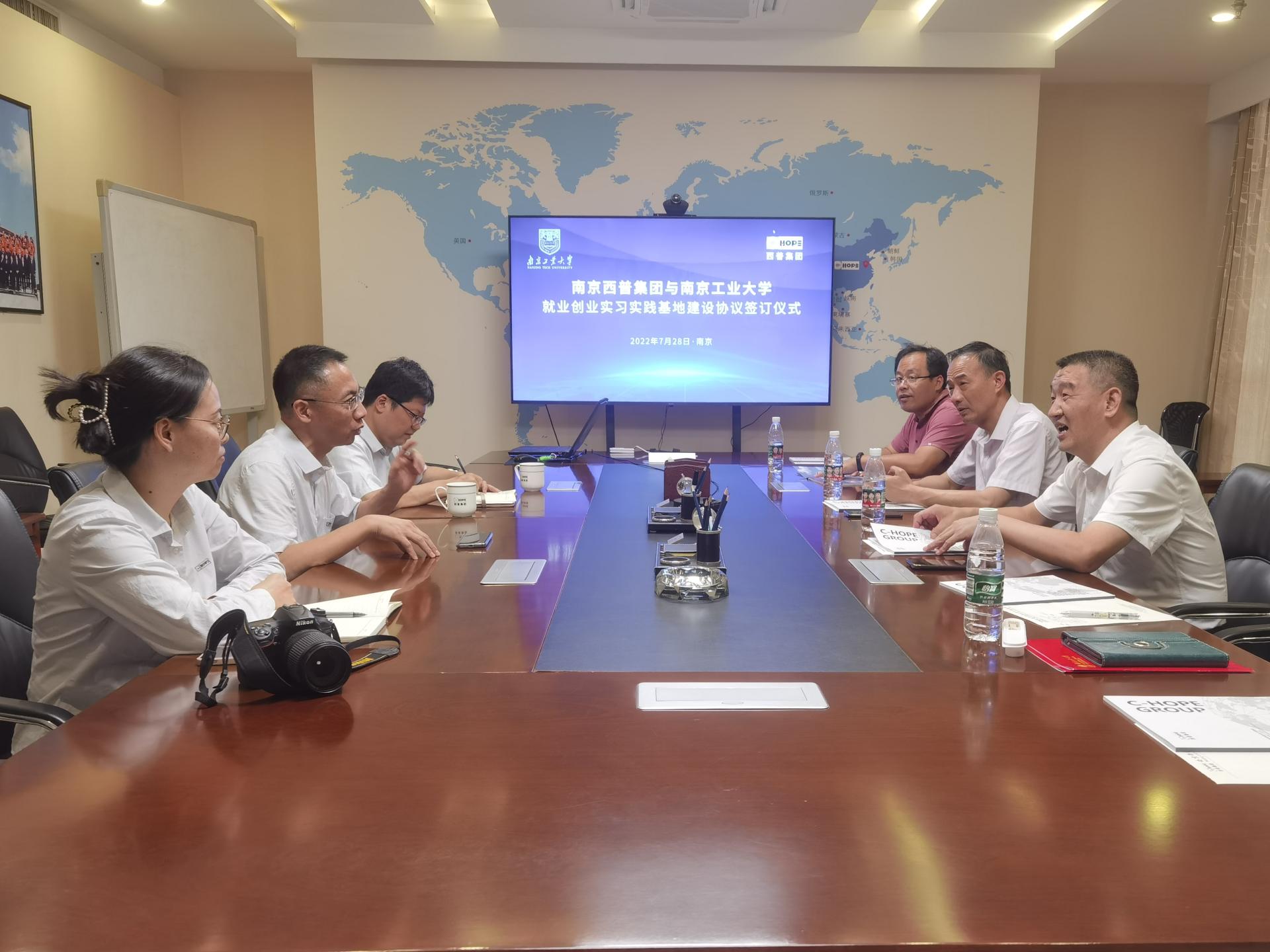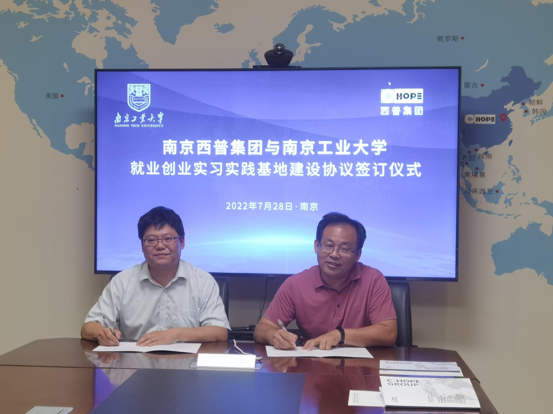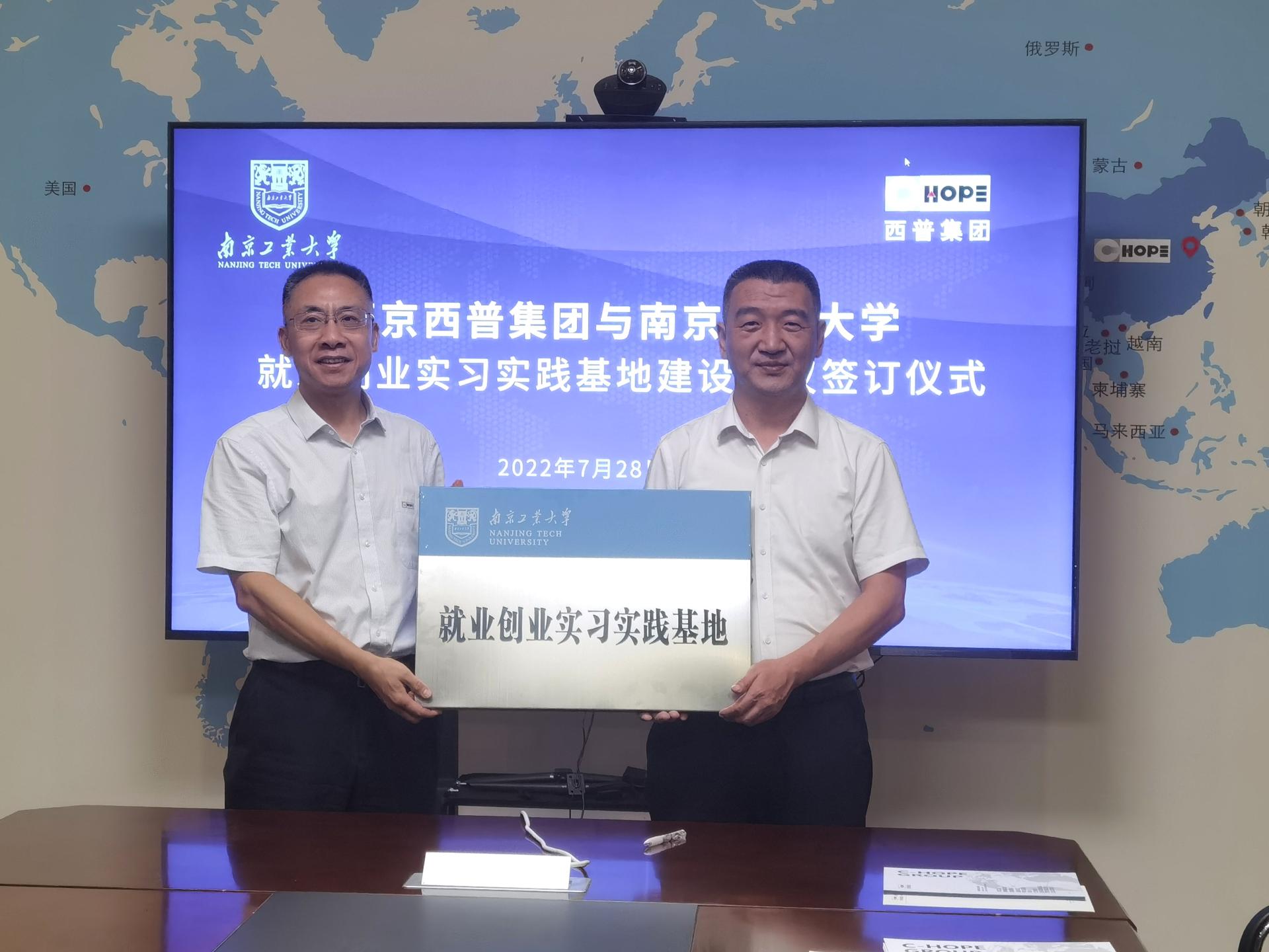 公司党委副书记石防震和南京西普水泥工程集团有限公司企业发展部部长孙睿签订了合作协议。公司党委书记高树军向公司授予“就业创业实习基地”铜牌。