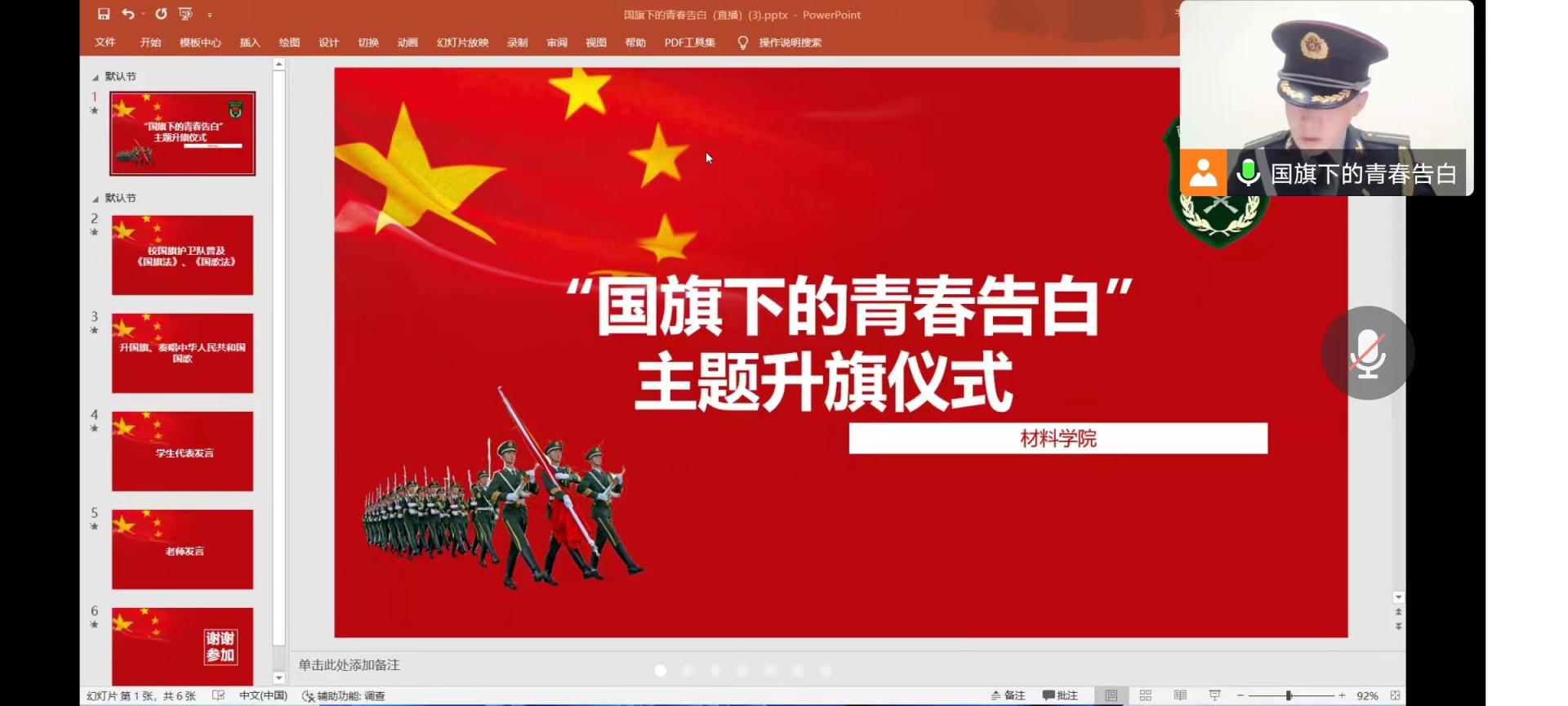 活动伊始,由国旗护卫队旗手普及国旗法、国歌法。紧接着,五星红旗在国旗护卫队的护送下缓缓移向国旗台。国旗在朝阳的照耀下冉冉升起,全体师生也通过在线直播观看了升旗仪式。suncitygroup太阳集团材科英才2202班张仁杰同学作为员工代表发言,表达了他们对于祖国的热爱。公司党委副书记石防震老师发表了“厚植爱国主义情怀,争做新时代员工楷模”主题讲话。他带领同学们一起回顾了中华民族伟大的奋斗历程,阐述了以爱国主义为核心的民族精神的内涵。带领同学们一起学习习总书记对青年的希望和要求,号召广老员工从我做起要践行社会主义核心价值观,锤炼品质、升华自我。
