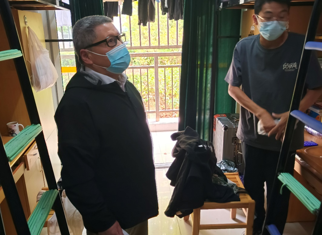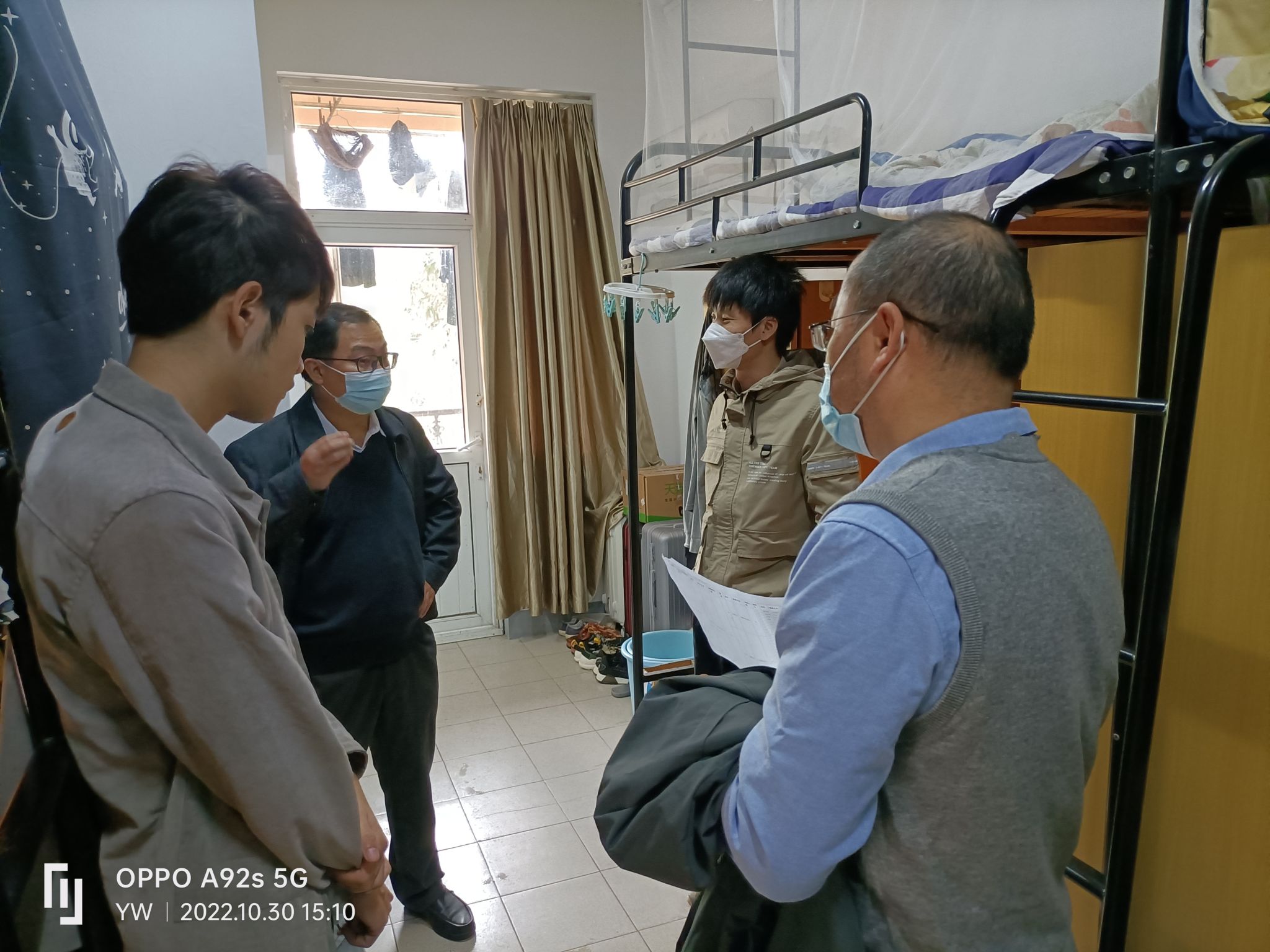 在校园临时封控期间,员工会不会紧张?线上学习效果怎样?同学们有没有什么困难?一直牵动着老师们的心。随着三轮核酸检测完成,为深入了解员工的思想动态和学习生活情况,及时帮助员工解决急难愁盼问题。10月30日下午,suncitygroup太阳集团各教师党支部、系负责人、在校教师、辅导员60余人组成五个大组若干小组,按片区深入员工宿舍与员工谈心交流,嘘寒问暖、传递关怀。