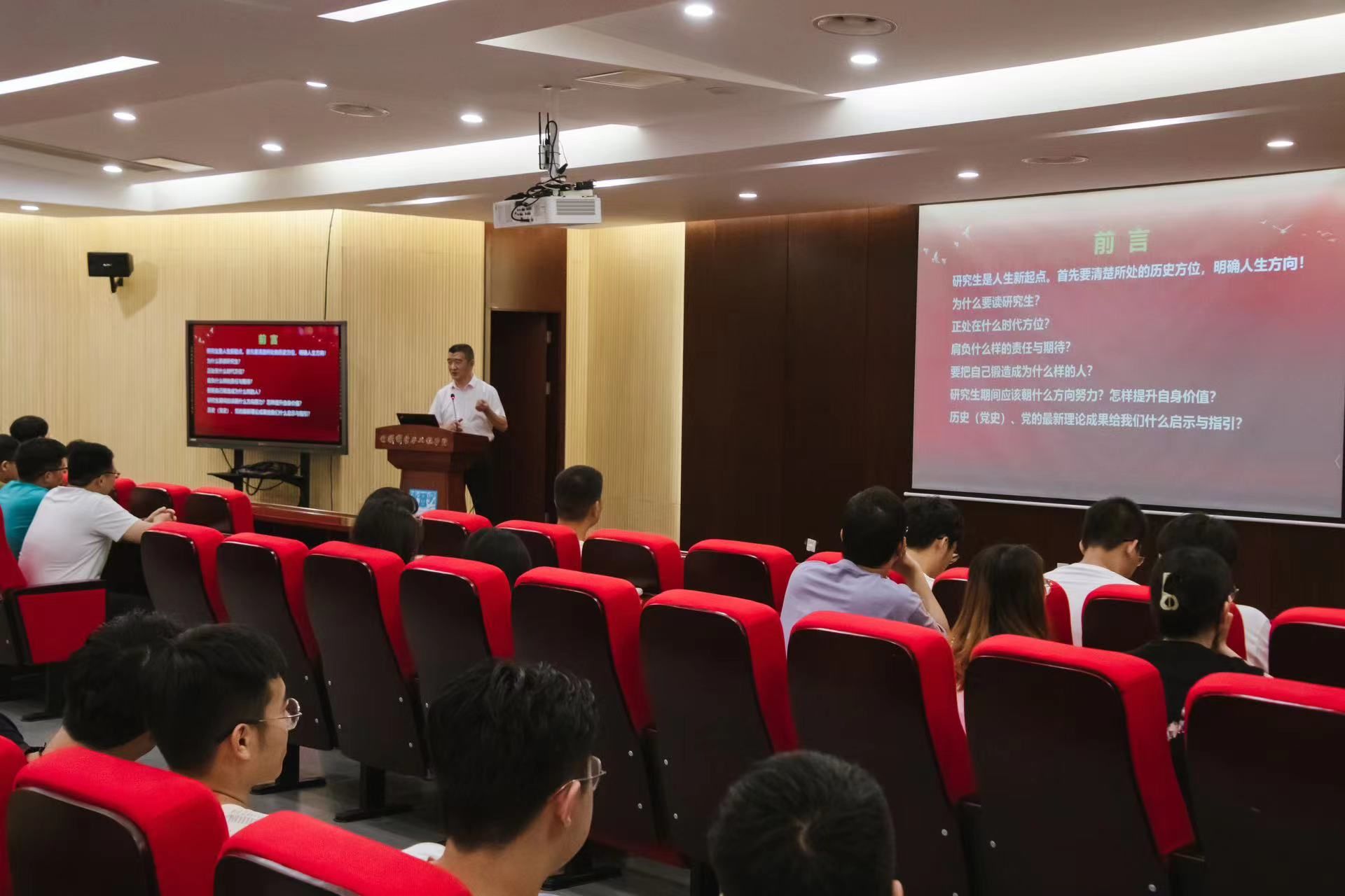 9月11日下午,公司党委书记高树军为新生开展理想信念教育讲座。以党史学习为着力点,从为什么要学习党史、传承红色基因、做新时代有为青年、树立正确历史观等方面全面、系统的阐释了党史学习的价值内涵,并勉励新生同学要明确目标、严格自律、养成良好习惯,圆满完成研究生阶段学业。