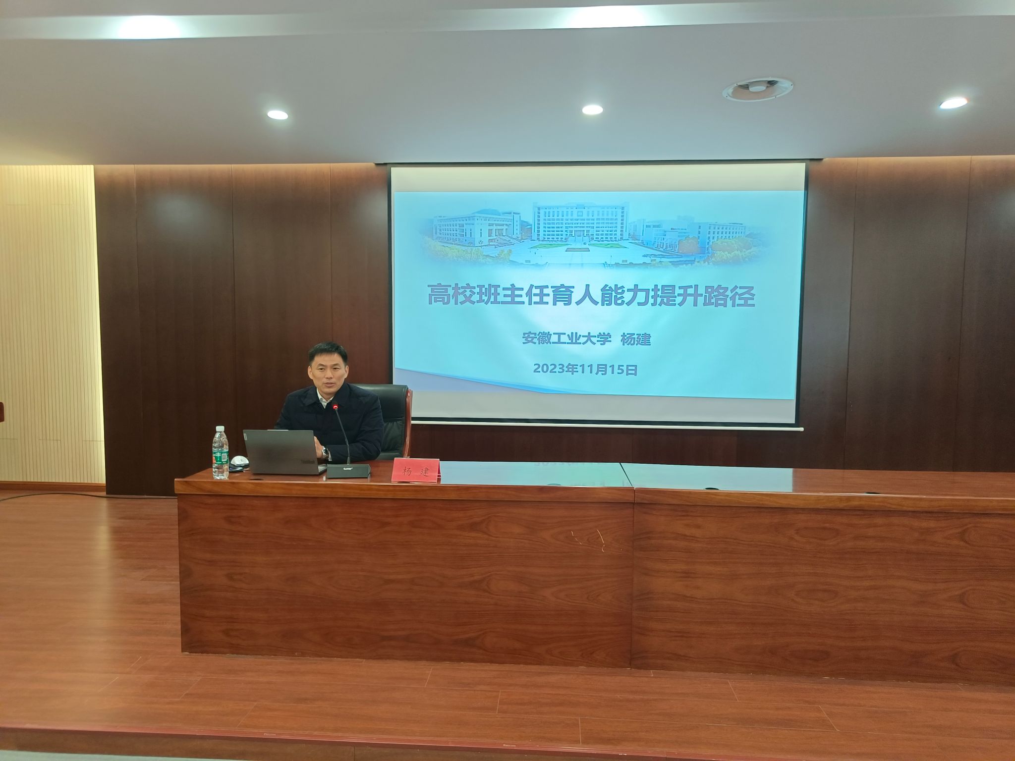 杨建长期从事员工思想政治工作,积累了丰富的工作经验。曾获得2022年全国最美高校辅导员、第六届全国高校辅导员年度人物。杨建结合工作案例,从读懂班主任剧本、定位班主任角色、十佳优秀班级案例和员工工作实践四个方面展开介绍。指出班主任工作的重要意义与价值,班主任的责任与担当,分享了班级思想建设、文化建设、学风建设、队伍建设、制度建设的经验与做法。
