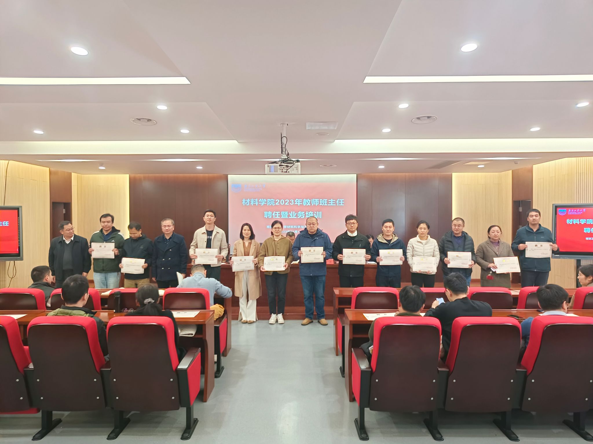 仪式上,朱云峰、王丽熙分别宣读《关于2023年本科生教师班主任的聘任决定》和《关于2023年研究生教师班主任的聘任决定》,崔升为班主任颁发聘书。高树军在讲话中希望全体班主任一是用爱心做员工的知心人,二是用细心做员工的引路人,三是用耐心做员工可信任的人。