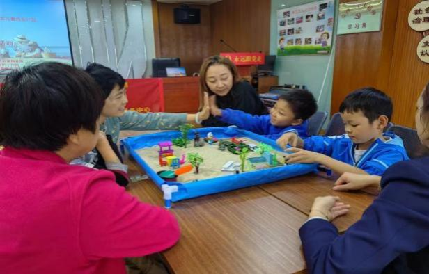 赴洲岛紫园社区党群服务中心时,志愿者和家长孩子们一起绘画并制作“沙盘”,用文化艺术陶冶儿童的审美情趣。赴洲岛家园社区退役军人服务站时,志愿者和孩子们一起制作DIY盆栽,学习照顾植物的方法,一同在汗水中收获快乐,体验劳动的价值。