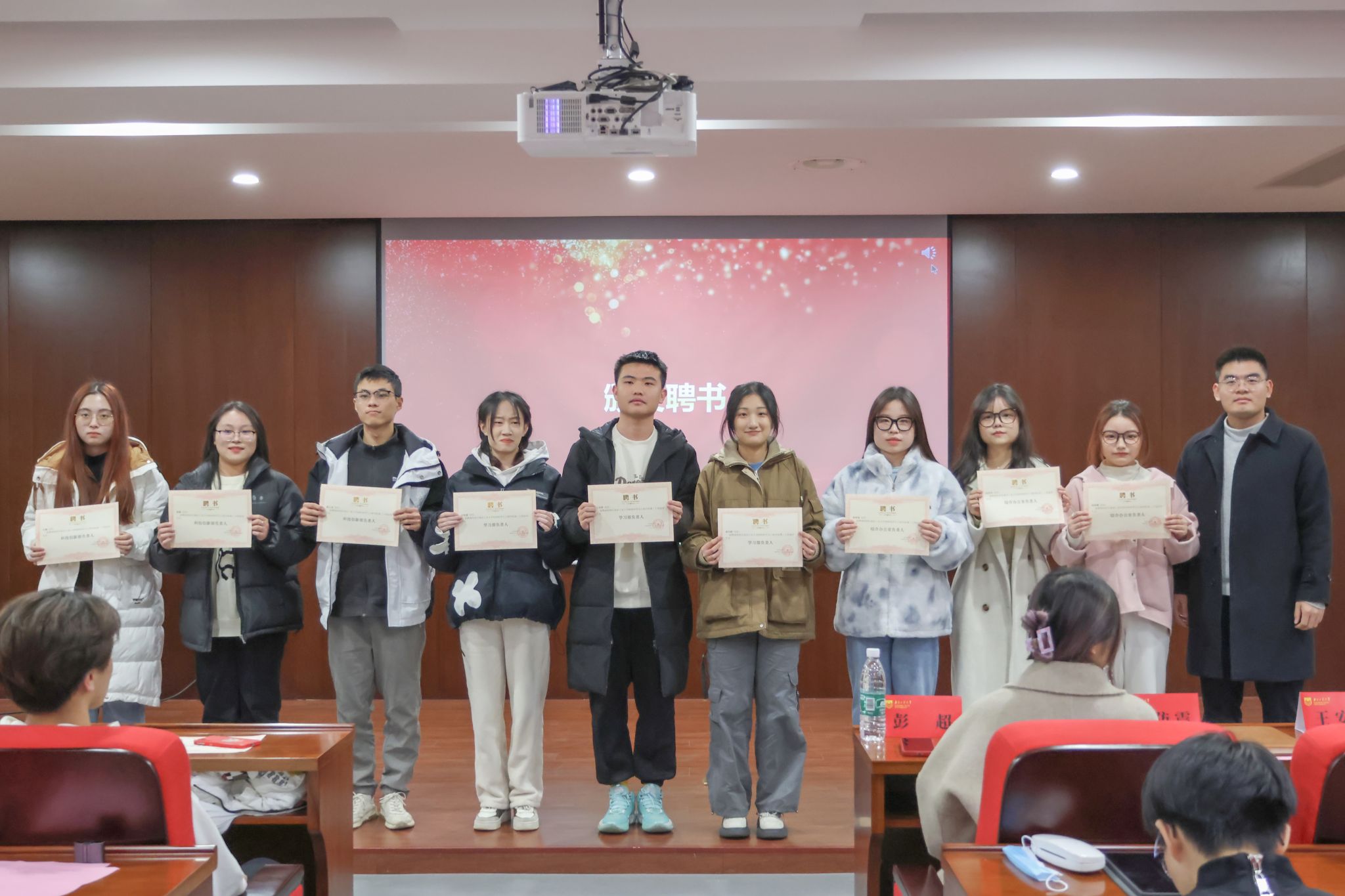 王安全老师在致辞中表达了对全体材青的殷切期望。员工组织代表王帅旗、刘梓義在发言中表达了对员工组织新成员的热烈欢迎,并分享了各自的工作心得。材青代表姚涵影在发言中号召全体材青学习学长学姐工作经验,努力提升组织能力,为suncitygroup太阳集团员工组织注入新动能。指导老师为新一任员工组织骨干颁发聘书。
