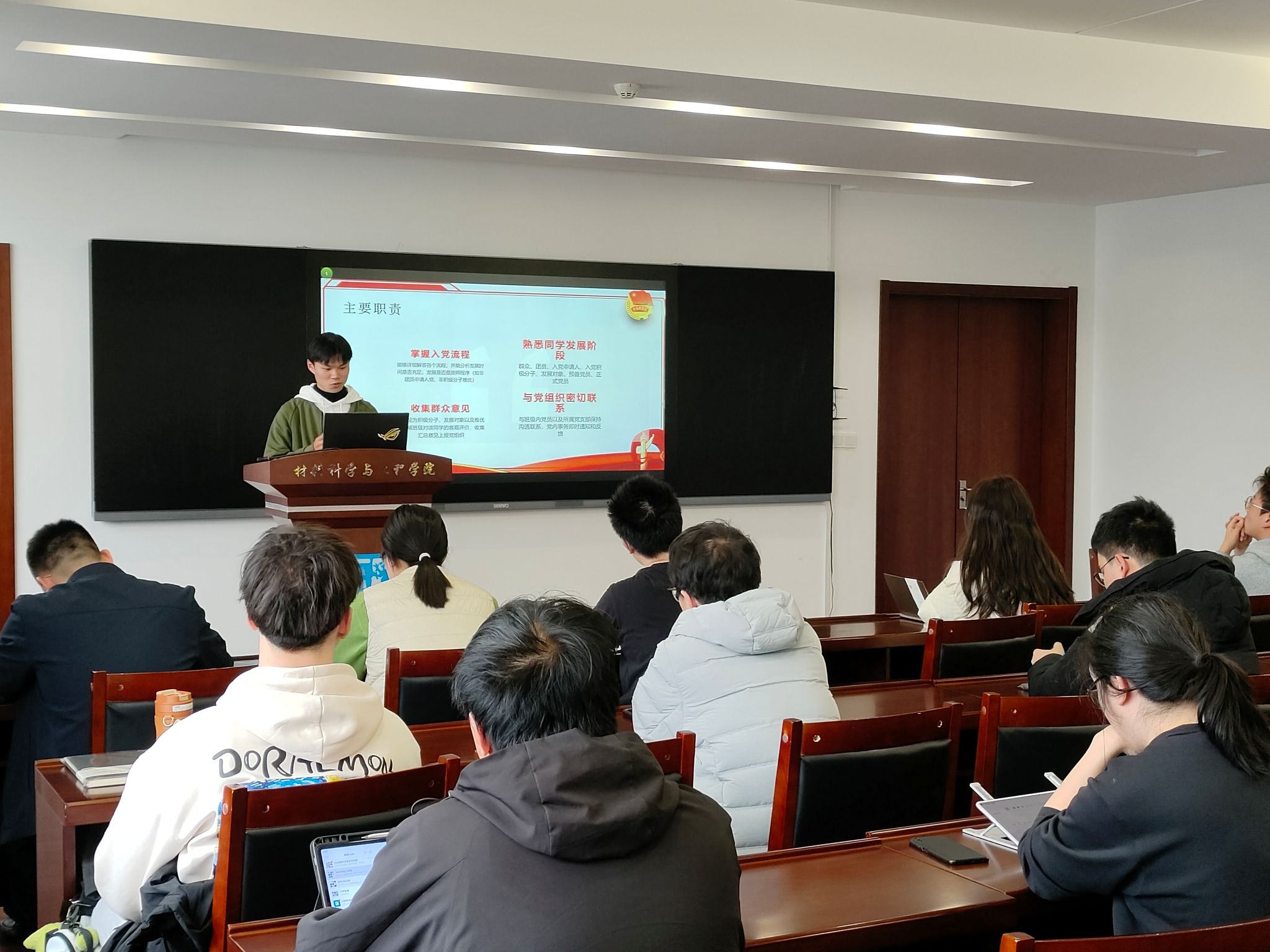 会上,2021级本科生团总支书记刘环宇、2022级本科生团总支书记张胜源分别分享了在日常团员教育管理和服务工作中的要点和体会,并号召团员骨干们扎根班级、扎根年级,以自身的实际行动带领身边团员青年同学共同成长。团委指导老师金蓓蓓就上一年度团支部各项工作进行复盘总结,点出特色亮点,检视问题不足。