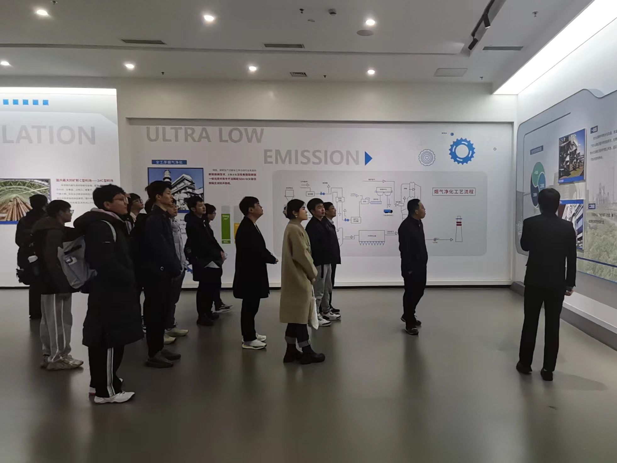在沙钢集团组织人事处副处长黄文华的带领下,一行人前往铁前管控中心参观沙钢集团的展厅,了解企业的发展历程、业务范围、生产产品等,并来到公司中控,熟悉公司生产流程,前往生产厂区,熟悉集团各个生产板块。厂区内树绿水清,无异味浓烟,打破了同学们对传统钢铁企业的刻板印象。本次访企拓岗带领同学们沉浸式感受企业文化、生产过程,让同学们更加深入了解了现代钢铁企业贯彻的“绿色低碳”“智能制造”发展理念,以及沙钢集体钢铁报国的社会责任感。