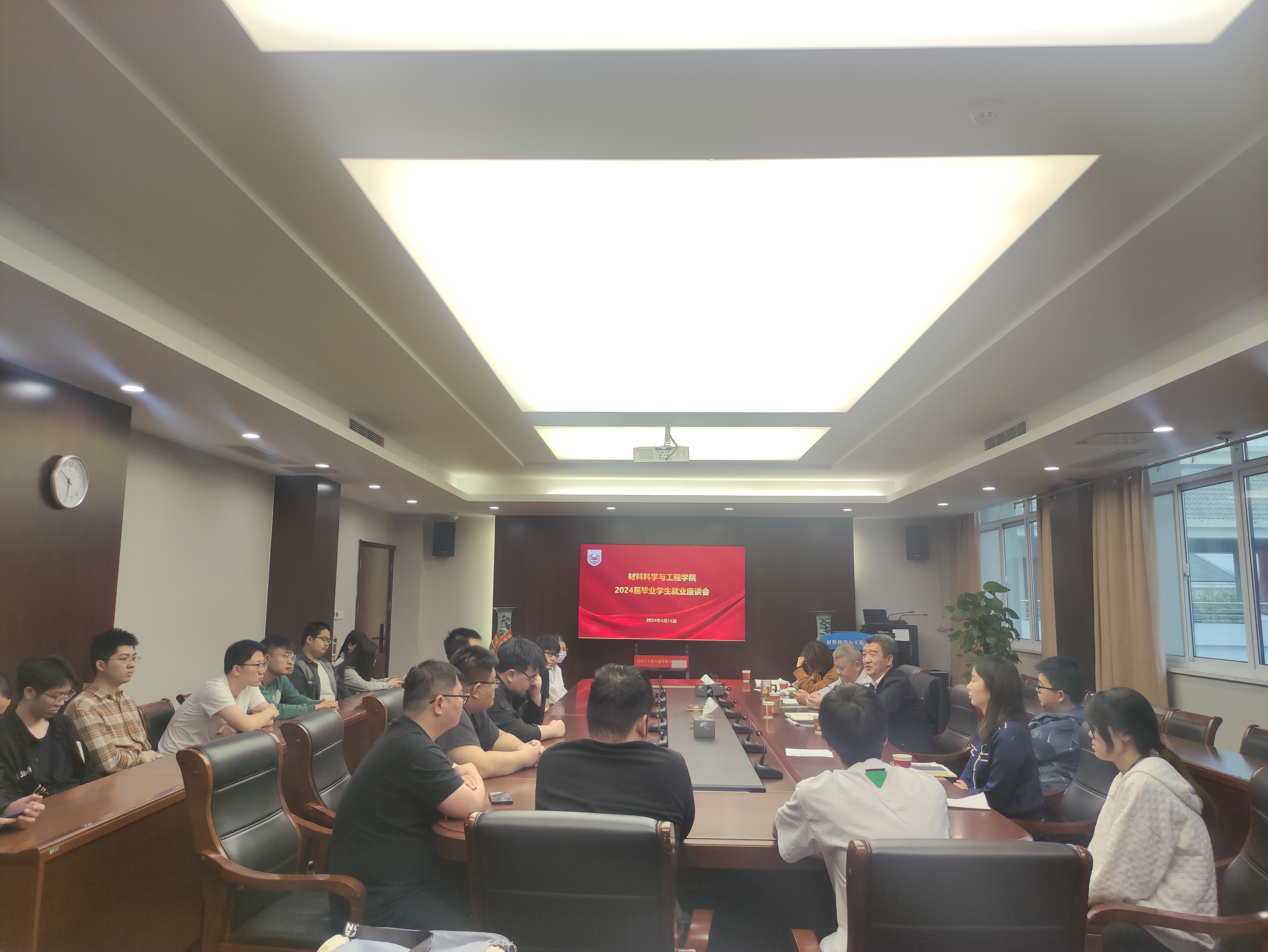 2023年4月15日,suncitygroup太阳集团在润德楼A518召开2024届毕业班员工就业座谈会。公司党委书记高树军、复合材料系教师王晓钧、学办主任丁楠、毕业班辅导员彭超、潘昱文出席座谈会,与各班尚未就业的员工代表进行了深入交流。