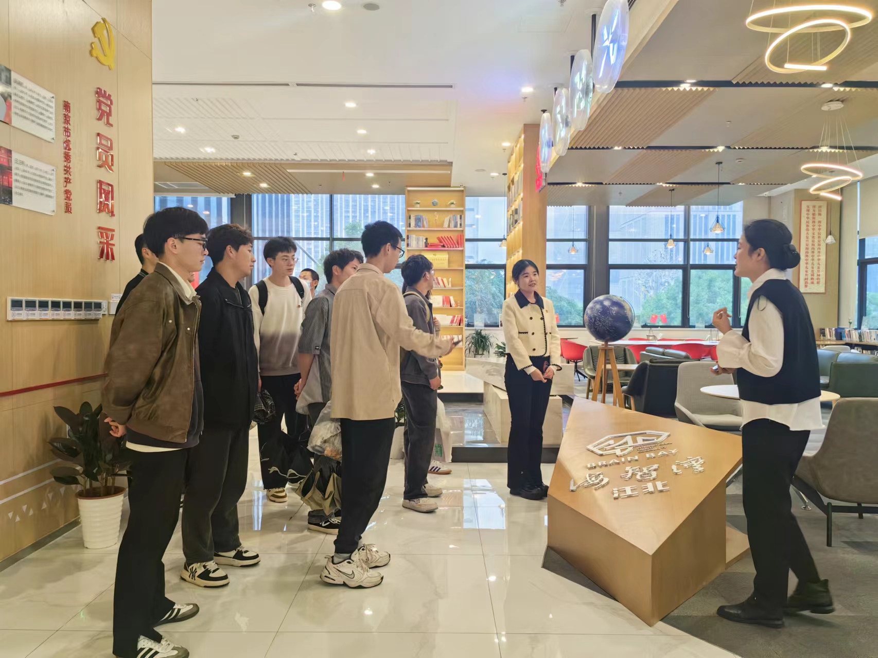 在江北新区研创园展示中心。同学们通过沙盘、宣传片及人工智能机器人的亲身体验,深刻感受到了新区和园区的飞速发展,表达了投身新区建设、贡献青春力量的决心。在江北新区廉洁文化广场,一个个形象生动的图文标语、廉政警句、名人家风故事展板等廉洁文化元素串珠成链,融廉于景。不仅让同学们感受到廉洁文化的魅力,更在潜移默化中增强了廉洁自律意识。