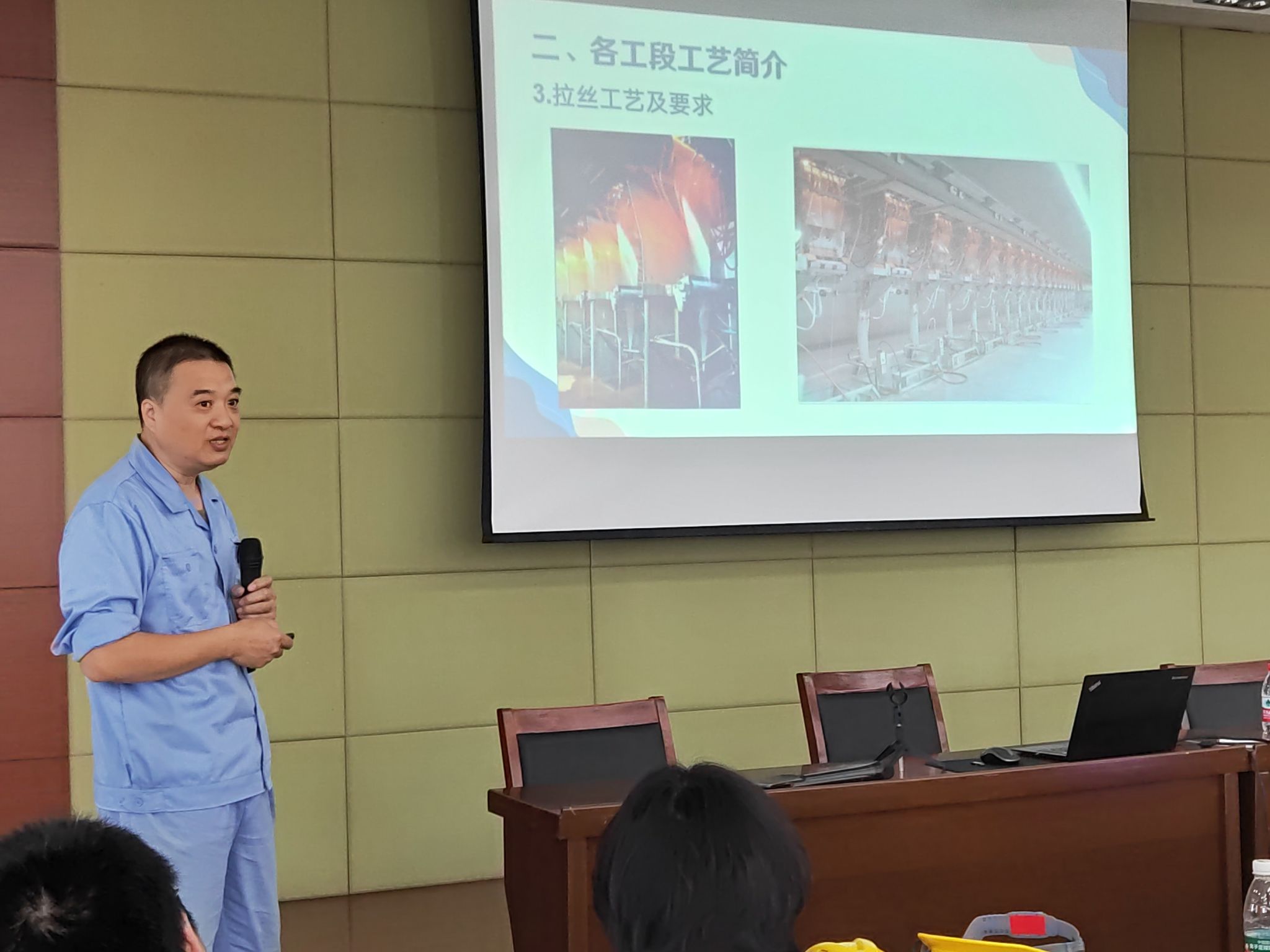 宣维栋老师以“企业行业共成长”和“玻璃纤维工艺流程及应用”两个主题,为同学们讲授企业、行业和个人在复合材料发展中的相互关系和发展历程,结合玻璃纤维工艺等专业内容进行专业课程思政教育,启迪员工们树立正确的人生观和世界观,为复合材料的发展打好基础、做好准备。朱忠裕老师为同学们讲授玻璃纤维制造和玻璃纤维制品的制造,并结合风电新能源应用和发展趋势,教育员工们要立志投身复材行业,注重理论联系实际,将学习到的专业知识应用于实际生产。金湘玉老师为同学们讲授生产过程中质量的控制,企业严谨的质量控制精神和要求深深地打动着同学们。