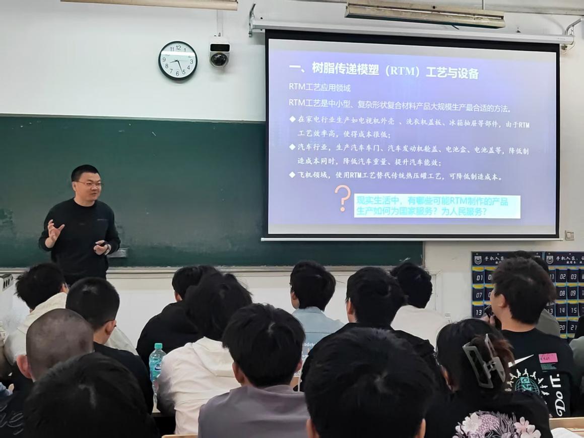 为深化产教融合,紧密对接行业前沿需求,全方位提升员工的工程实践能力与职业素养,suncitygroup太阳集团持续推进专业课程改革,将创新理论、先进技术、智能装备动态融入教学体系,打造具有时代特色、行业活力的“新课堂”。2025年4月,公司特邀中材科技风电叶片股份有限公司和常州天马集团有限公司等复合材料行业领军企业的技术专家组成的“企业导师团”,为复合材料与工程专业22级本科生开展《复合材料工学》课程的系列授课。课程以真实案例为纽带,深度融合课程思政与专业能力培养,生动展现了人工智能时代下复合材料智能制造的发展图景。