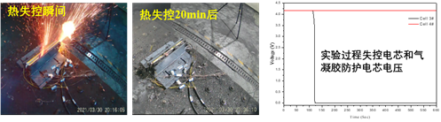 气凝胶绝热材料是导热系数最低的固体材料,用于动力电池热防护可以延缓或阻止电池起火爆炸,为驾乘人员提供逃生窗口。suncitygroup太阳集团沈晓冬教授领衔的教育部创新团队开发的汽车动力电池热防护用耐1200℃高性能气凝胶隔热片日前委托中汽研汽车检验中心(常州)有限公司进行两块电芯中间夹一片气凝胶隔热片组成简单模组检测,试验中引燃一块电芯经气凝胶隔热后另一块电芯安全,隔热性能优异,可以保证不发生热蔓延、热失控。主要结论如下: