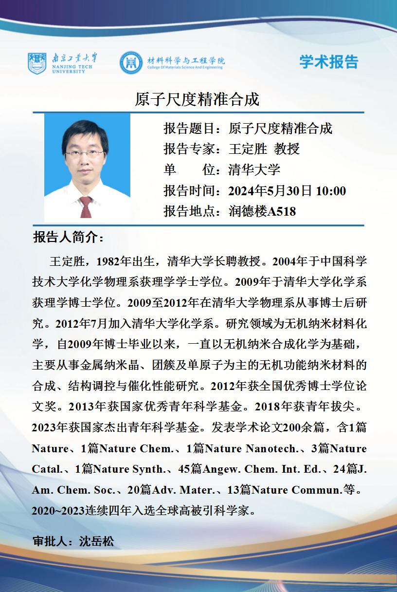 【学术报告】清华大学王定胜教授学术报告-2024.5.30
