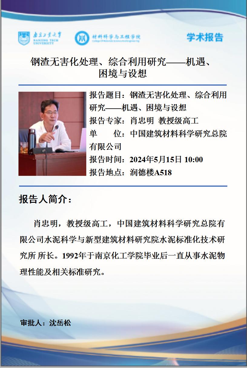 肖忠明,教授级高工,中国建筑材料科学研究总院有限公司水泥科学与新型建筑材料研究院水泥标准化技术研究所 所长。1992年于南京化工公司毕业后一直从事水泥物理性能及相关标准研究。