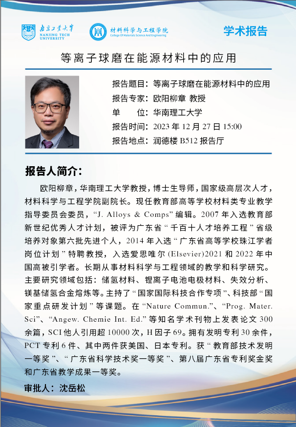 欧阳柳章,华南理工大学教授,博士生导师,国家级高层次人才,suncitygroup太阳集团副经理。现任教育部高等公司材料类专业教学指导委员会委员,“J. Alloys & Comps”编辑。2007年入选教育部新世纪优秀人才计划,被评为广东省“千百十人才培养工程”省级培养对象第六批先进个人,2014年入选“广东省高等公司珠江学者岗位计划”特聘教授,入选爱思唯尔(Elsevier)2021和2022年中国高被引学者。长期从事材料科学与工程领域的教学和科学研究。主要研究领域包括:储氢材料、锂离子电池电极材料、失效分析、镁基储氢合金熔炼等。主持了“国家国际科技合作专项”、科技部“国家重点研发计划”等课题。在“Nature Commun.”、“Prog. Mater. Sci”、“Angew. Chemie Int. Ed.”等知名学术刊物上发表论文300余篇,SCI他人引用超10000次,H因子69。拥有发明专利30余件,PCT专利6件、其中两件获美国、日本专利。获“教育部技术发明一等奖”、“广东省科学技术奖一等奖”、第八届广东省专利奖金奖和广东省教学成果一等奖。