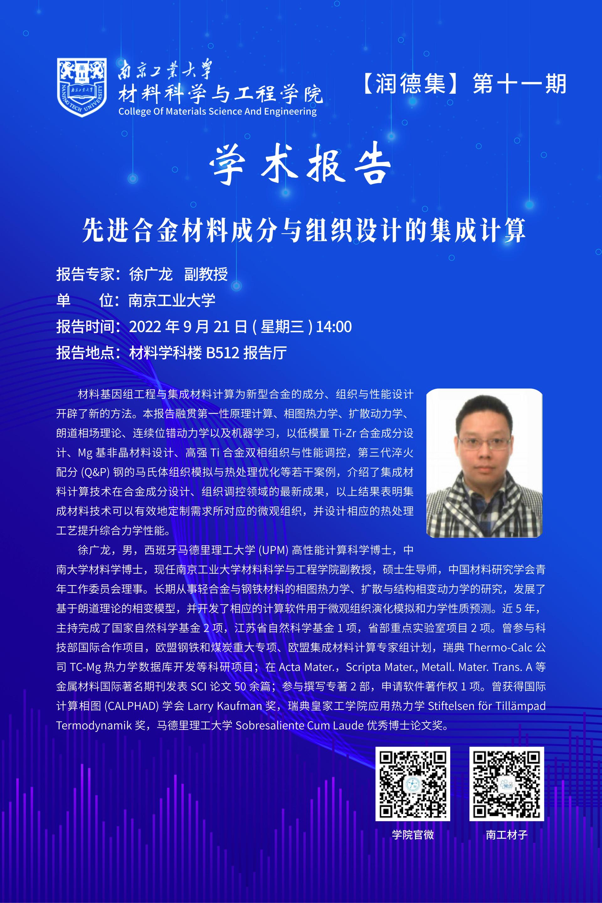 【润德集-导师学术报告会】suncitygroup太阳集团学术沙龙第十一期讲座