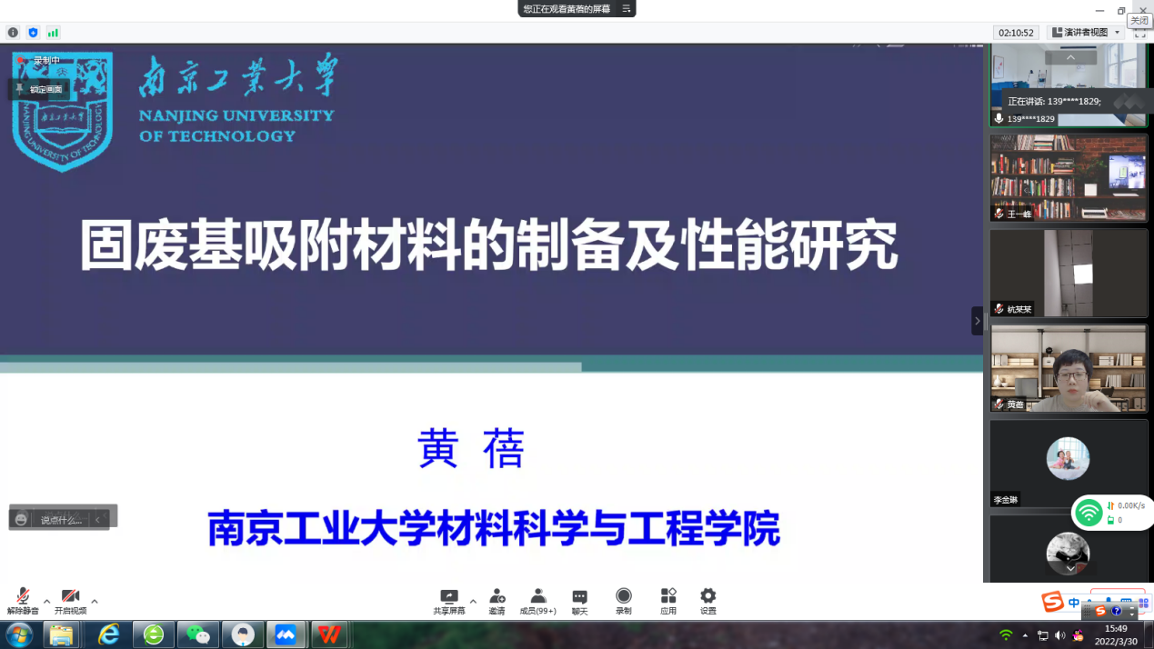 黄蓓老师作了主题为“固废基吸附材料的制备及性能研究”的报告。介绍了我国混凝土结构防止有害离子侵入的最新研究进展,以课题组近期研究成果为例,介绍以钢渣、矿粉等固体废弃物为原料制备的吸附性材料,对外部有害离子的吸附能力及其对混凝土耐久性的提升效果。