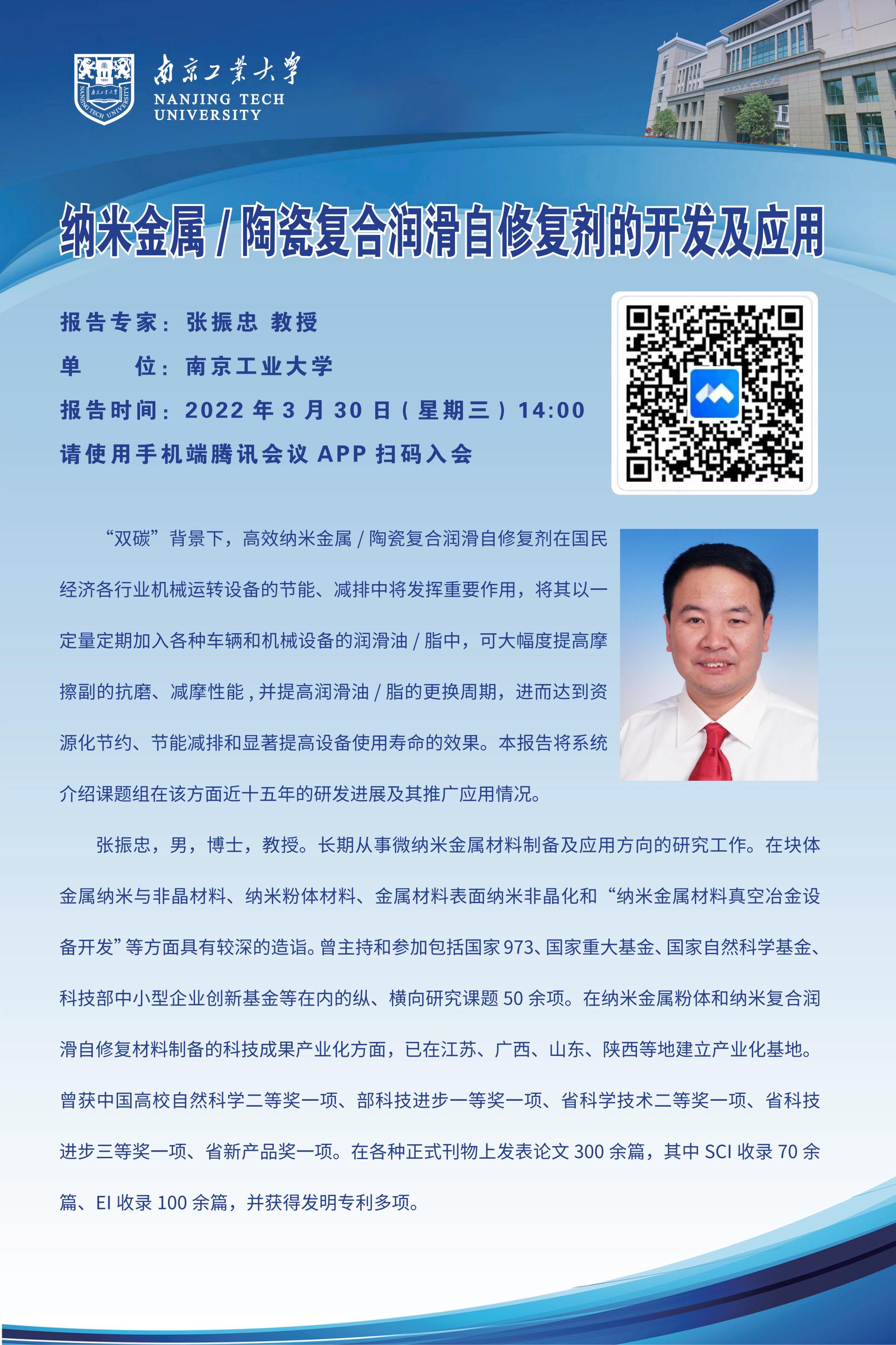 【润德集-导师学术报告会】纳米金属/陶瓷复合润滑自修复剂的开发级应用