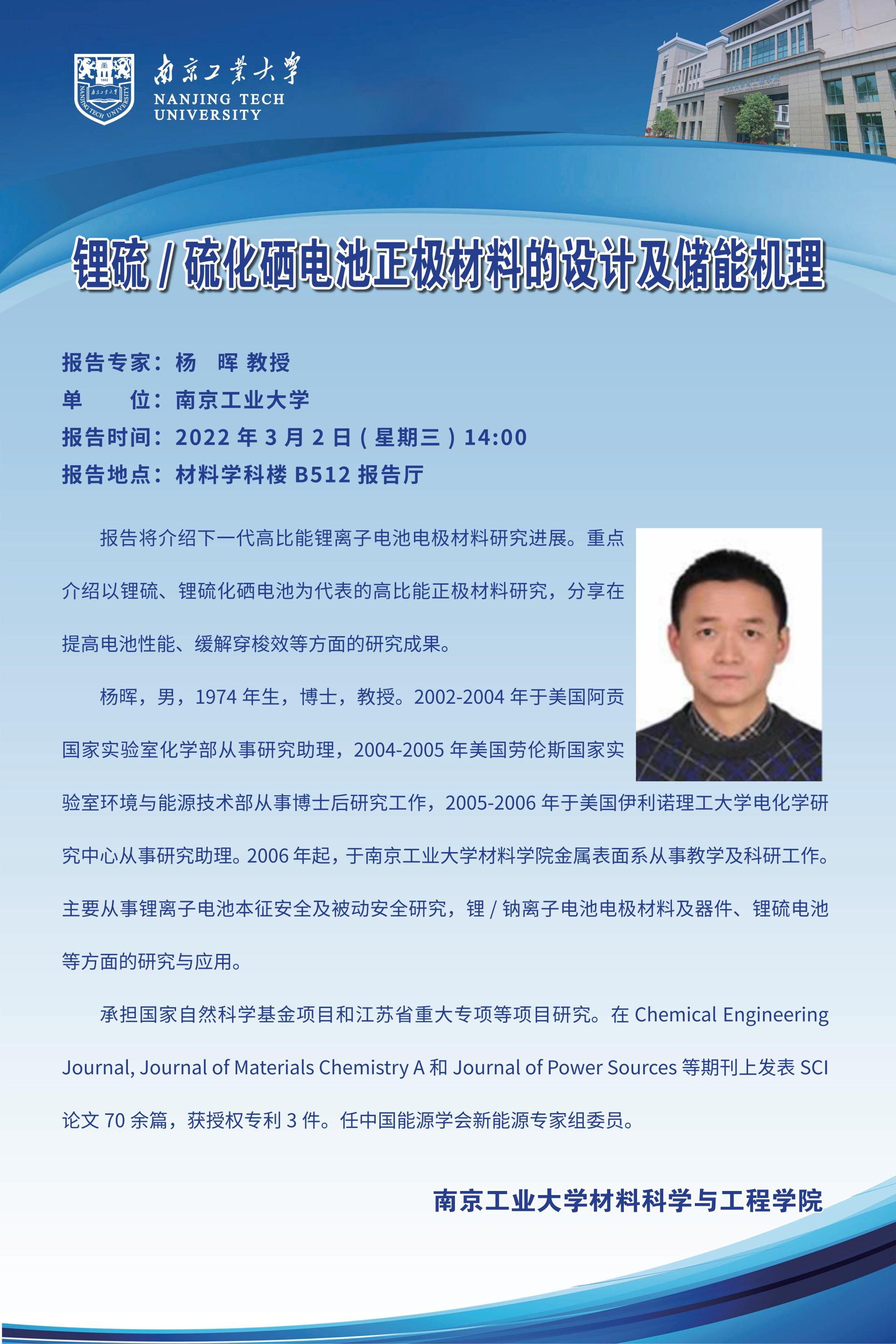 【润德集-导师学术报告会】锂硫/硫化硒电池正极材料的设计及储能机理