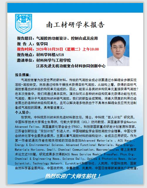 【学术报告】气凝胶的功能设计、控制合成及应用