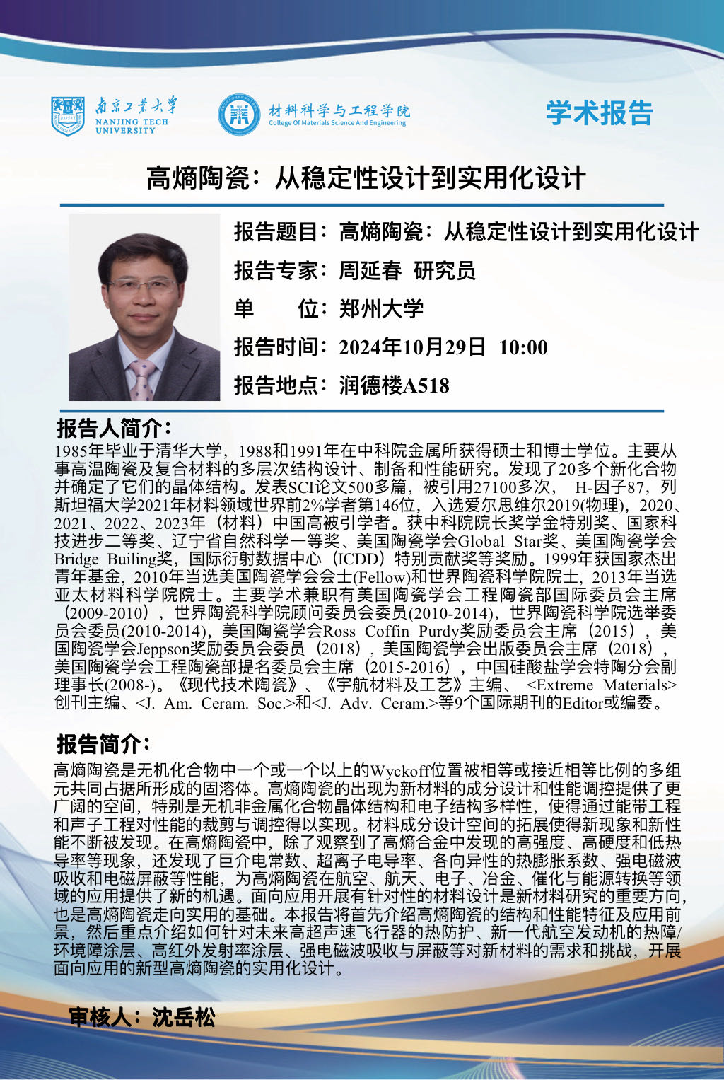 报告题目:高熵陶瓷:从稳定性设计到实用化设计